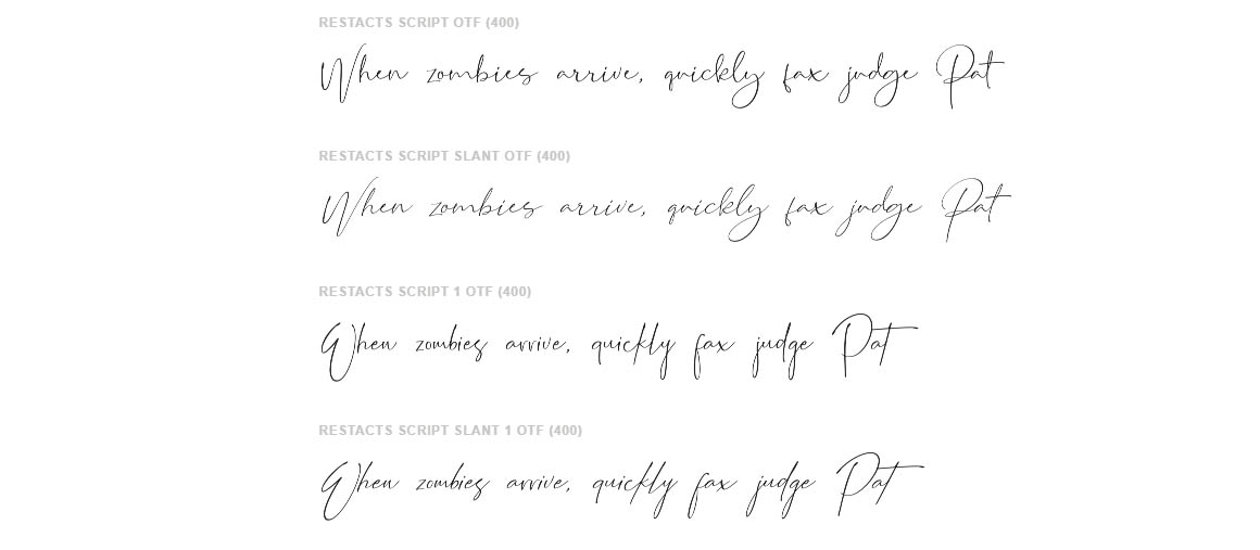 To make the letters look as natural as possible, here with we attach 101 Ligature on our Ligature of Restacts Script preview :af aff al all ar at att az bb bf bl br bbr bt cc cr cf dd da dda df dl dr ddr dt ee ef eff el ell er et ett ez ff gf hh hf ht if iff il ill ir it itt iz jf kk kf ll lf lt mm ma mma mf nn nf oo of off ol ool oll ot oot ott oz pp pf qf rr rf ss sb ssb sf ssf sh ssh sk ssk sl ssl sr ssr st sst tt uf ul ull ur ut utt uz xx xf yf zz.