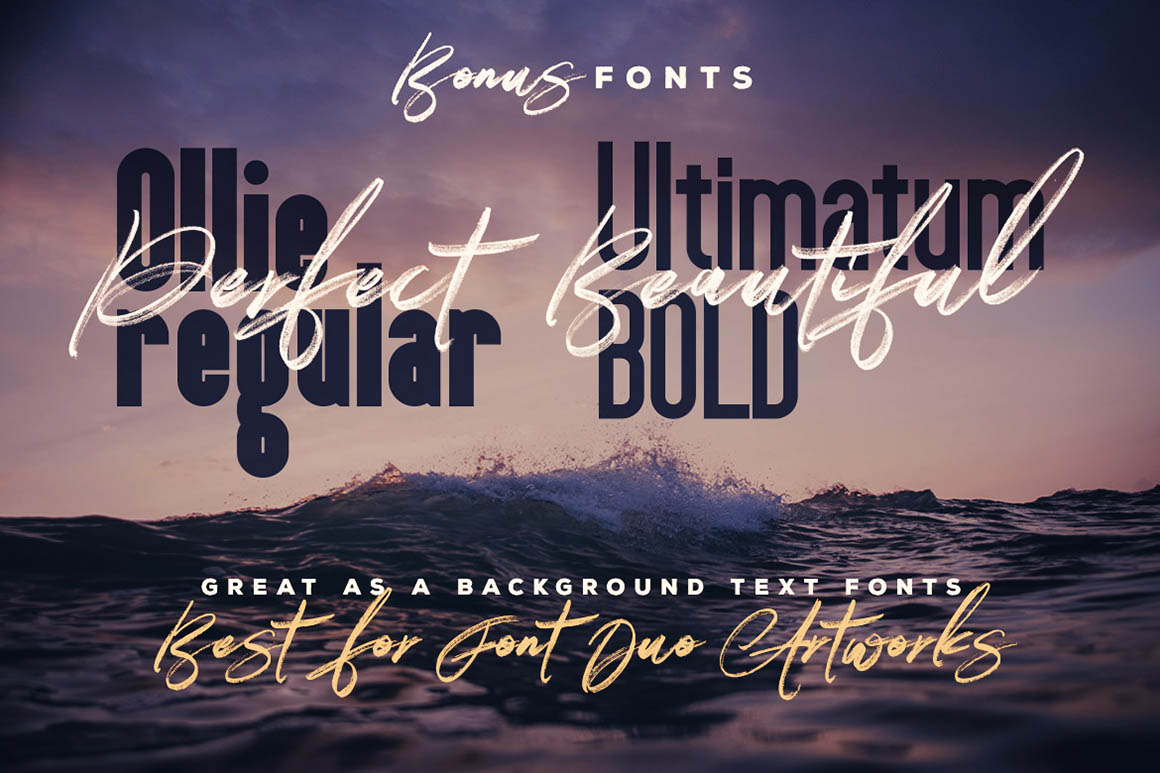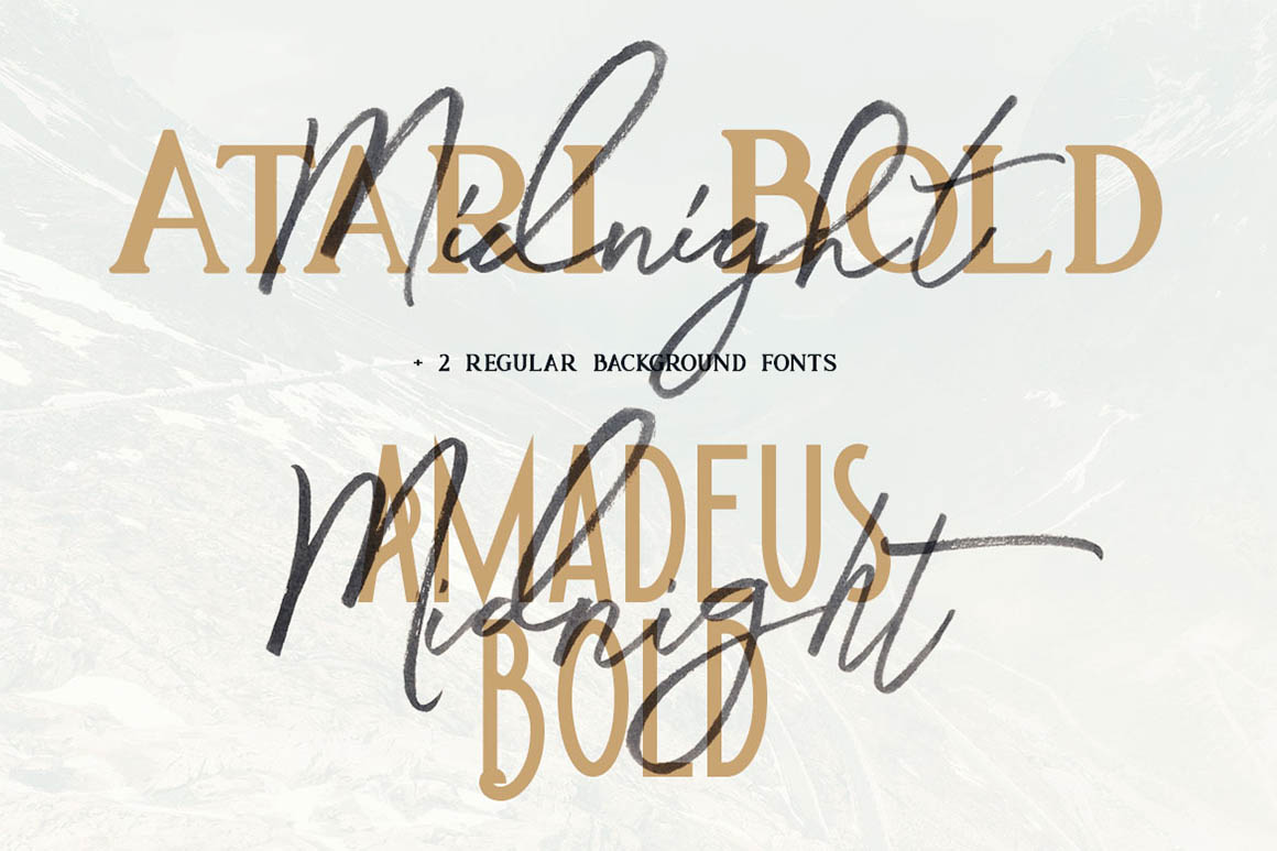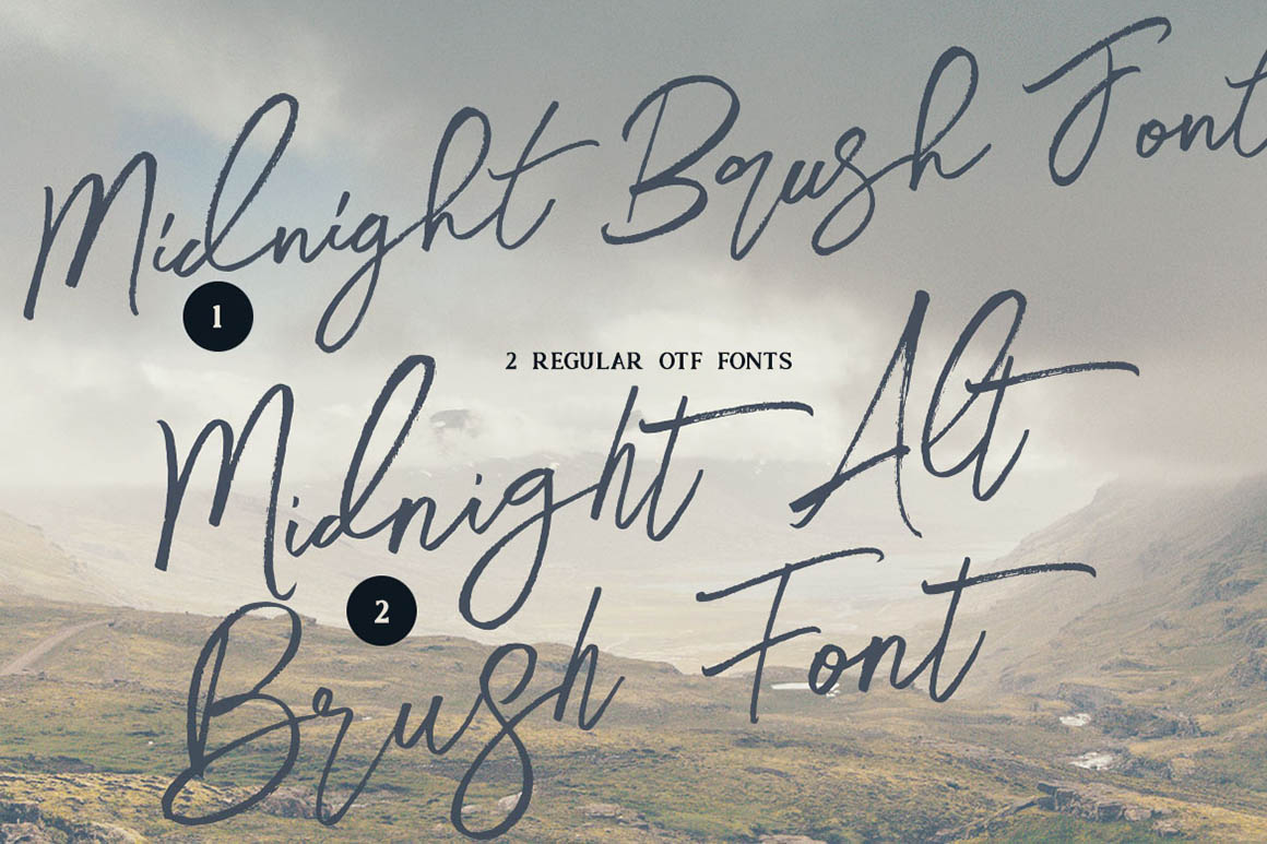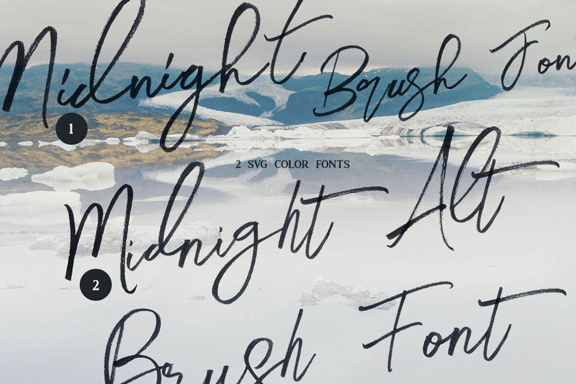 - Midnight Brush & SVG Font – 4 regular fonts + 2 SVG fonts