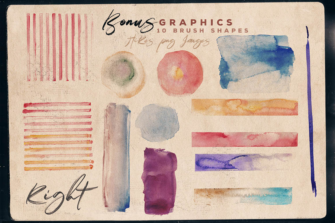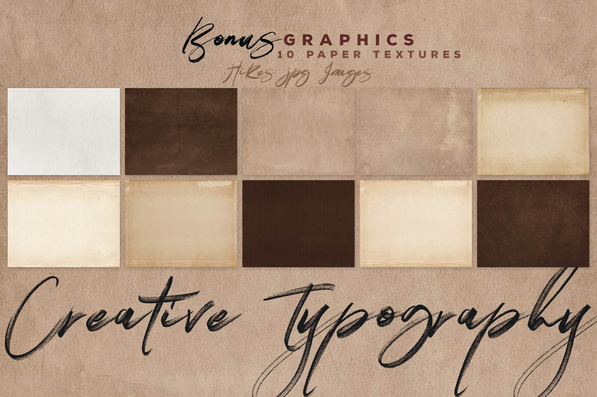 - Right Brush & SVG Font – 10 paper textures, 10 brush shapes & 10 handwritten shapes