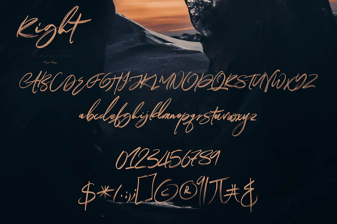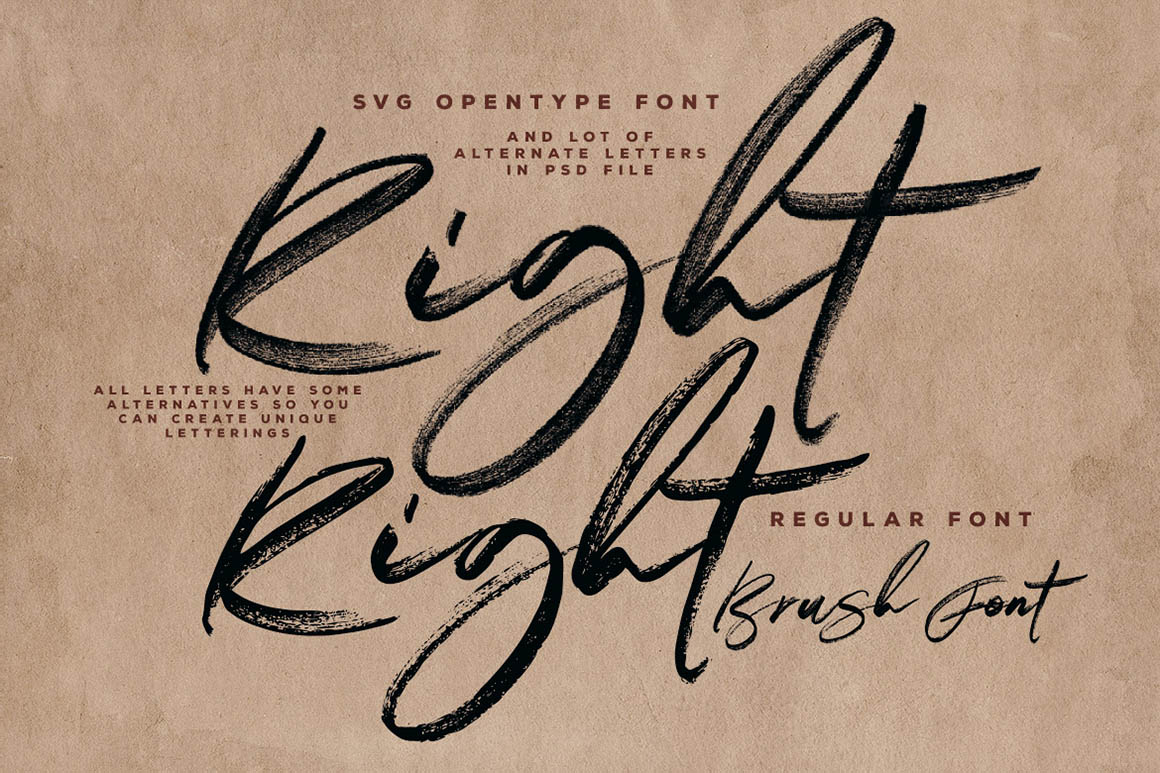 - Right Brush & SVG Font – 3 regular fonts + 1 SVG fonts