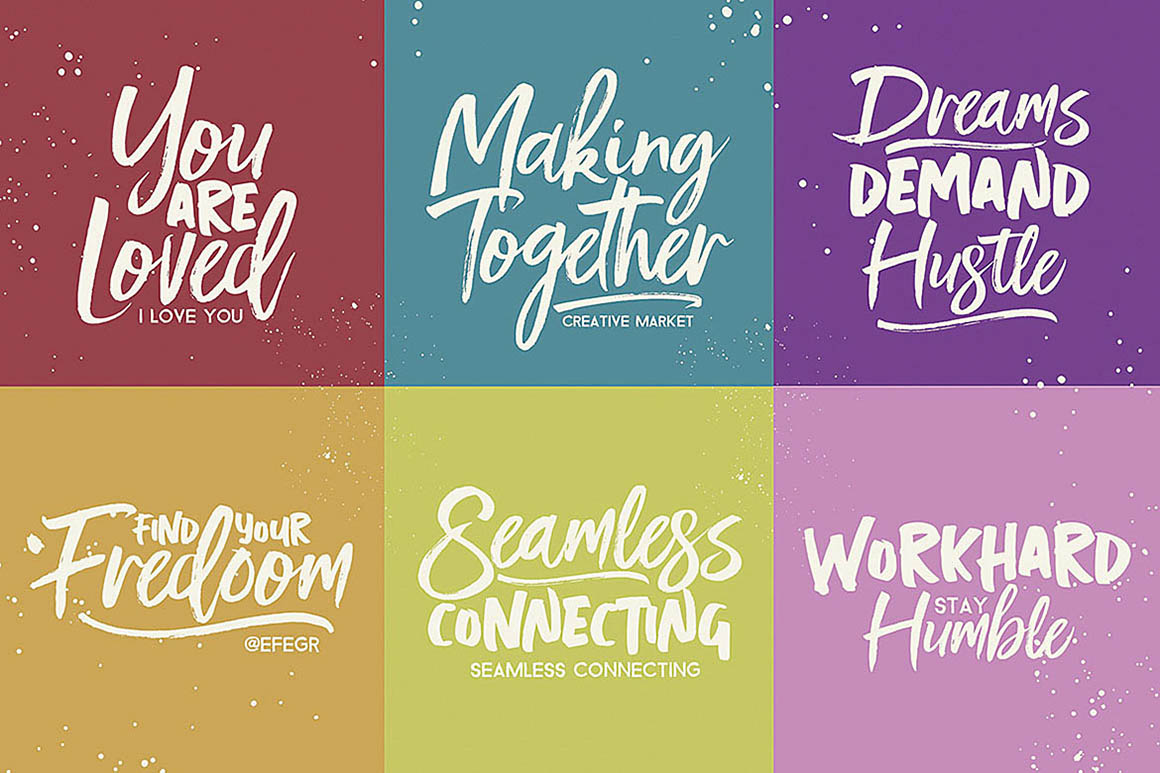 - 18 font families with 50 fonts + 15 SVG realistic brush fonts