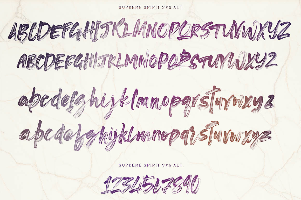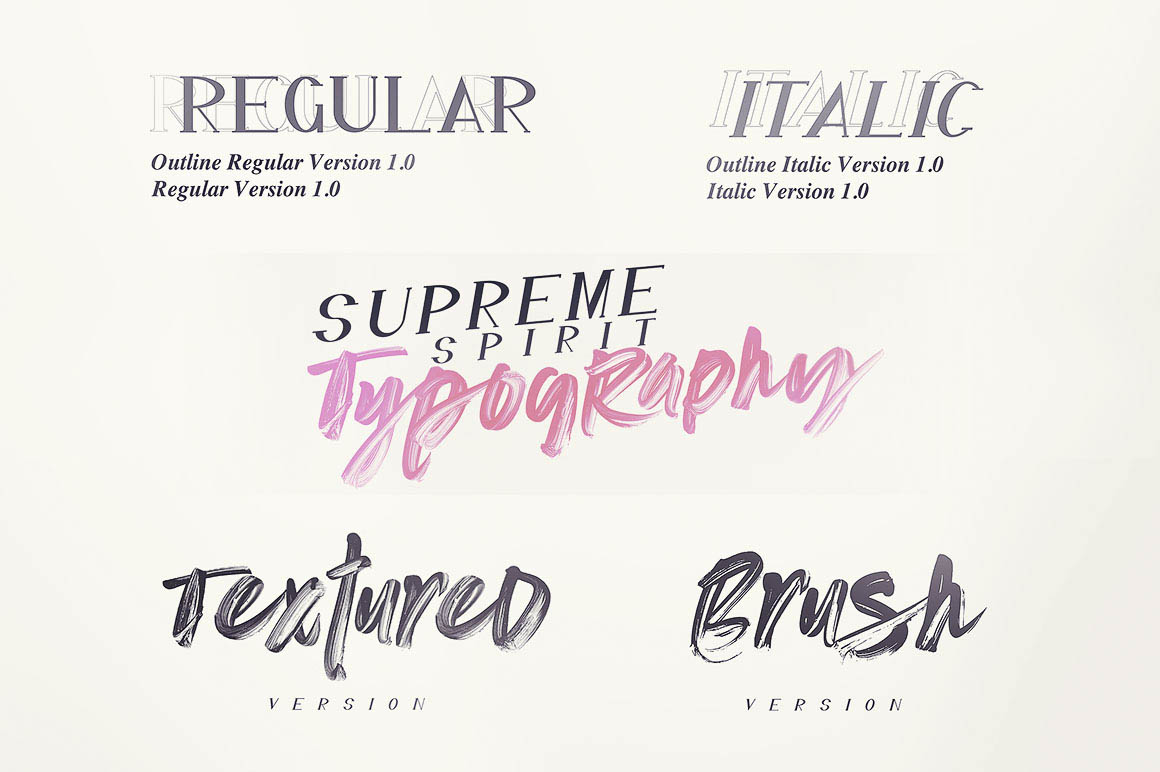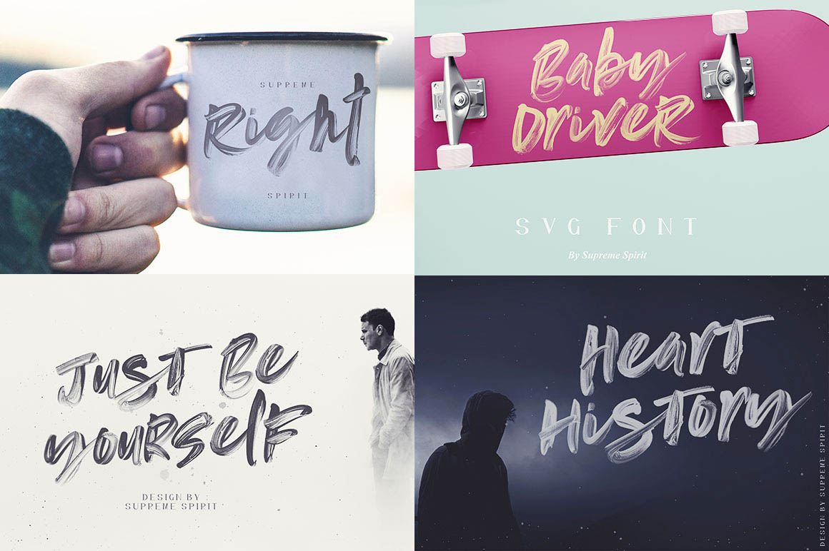 - Supreme Spirit Brush Font – 4 regular fonts + 2 SVG fonts