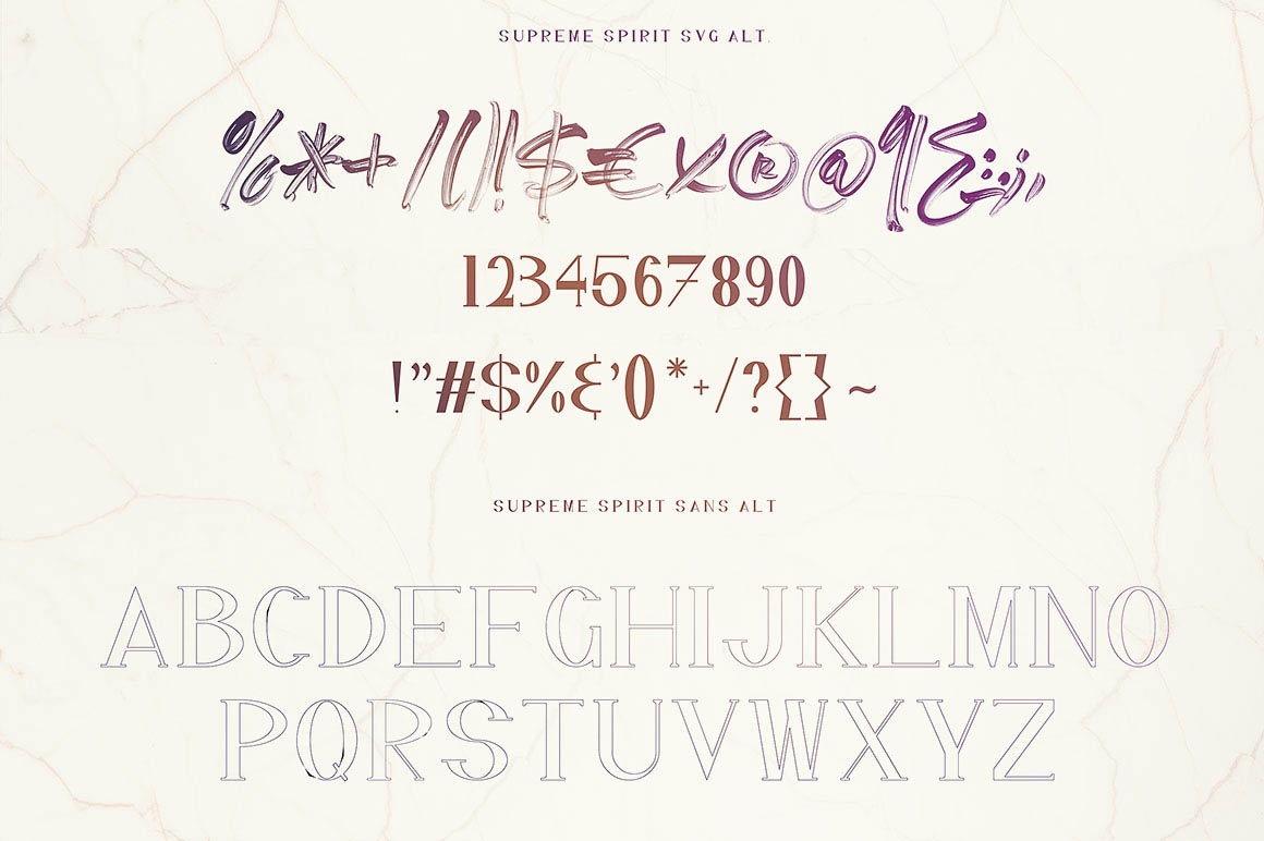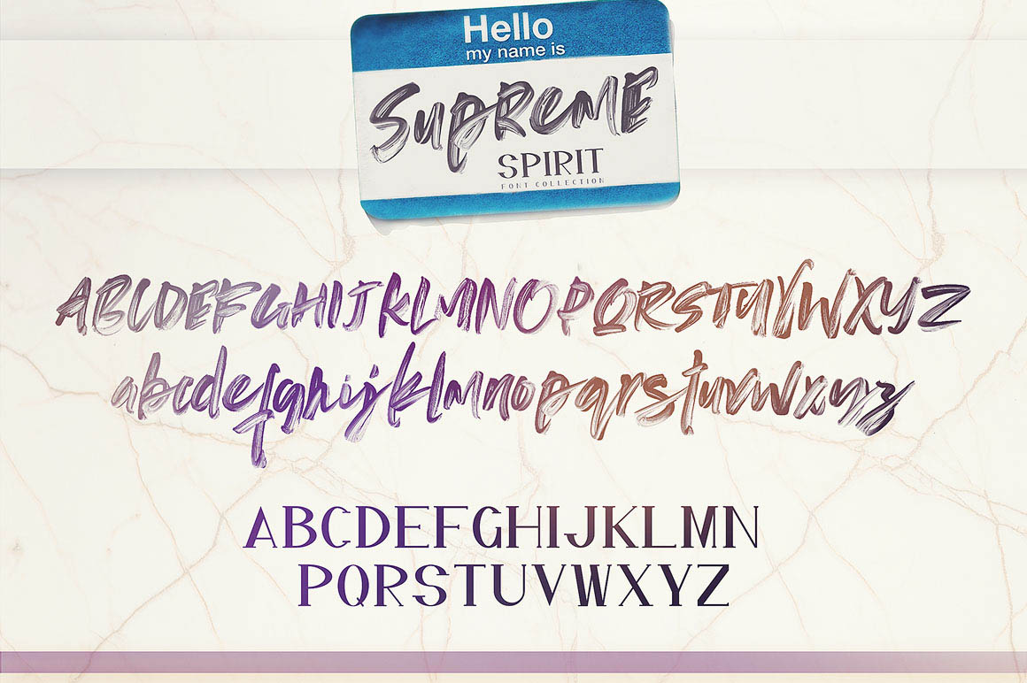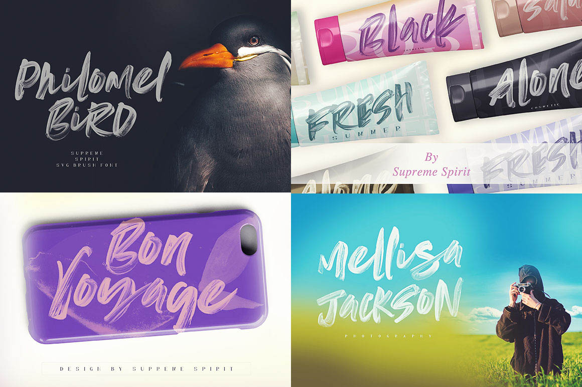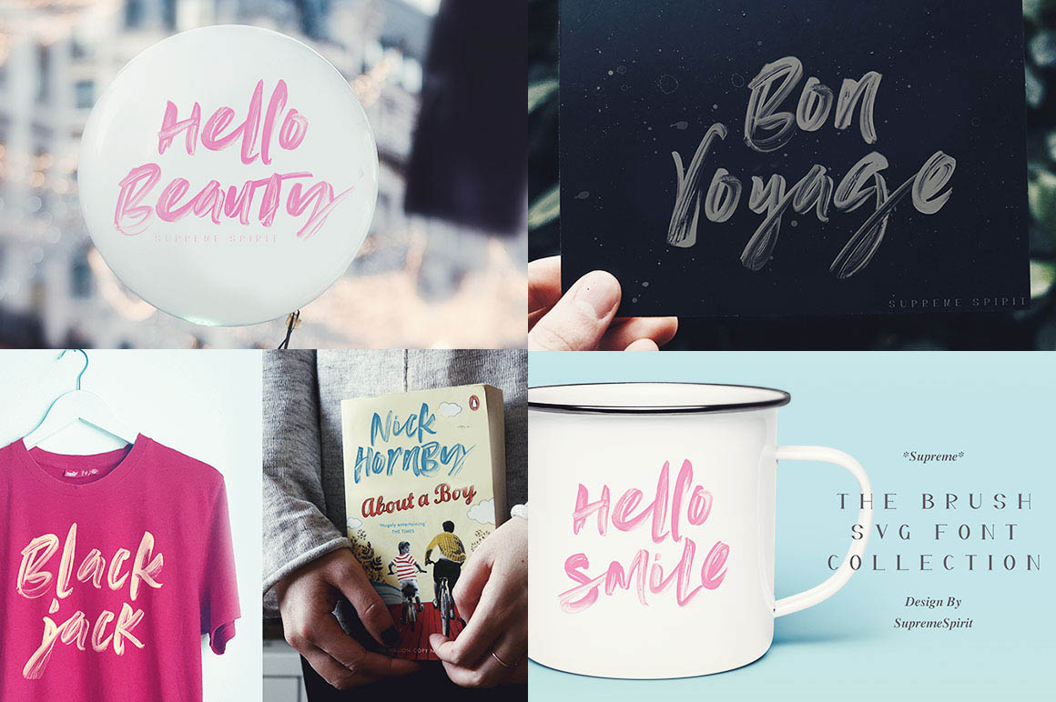 - Supreme Spirit Brush Font – 4 regular fonts + 2 SVG fonts