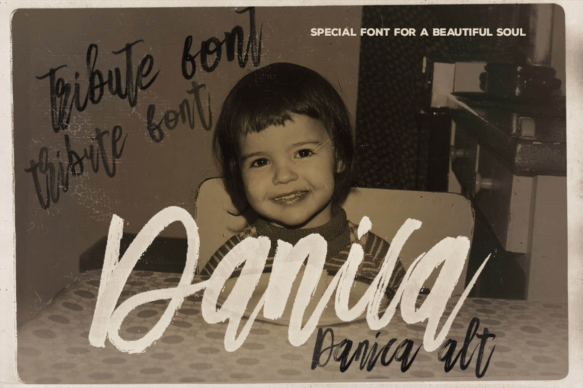 - Danica Tribute Brush & SVG Font – 2 regular fonts + 2 SVG fonts