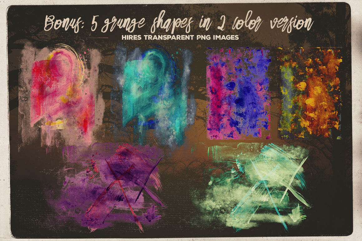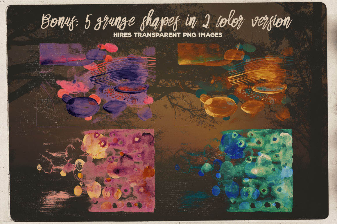 - extended license (like all of our deals): use for unlimited personal and commercial projects + you can also use them in designs/products that you sell. You can use all these items as a part of your non-digital or digital designs ( posters, t-shirt designs, stickers, web templates…). You cannot resell these files directly, or within items/goods where they can be extracted in their original form (like vector shapes, elements, fonts… – they need to be flatten into background or object in your digital item for sale). License is only for 1 person – you’ll need to buy 2 licenses if 2 persons will work with these graphics. Please read more about our exclusive license!