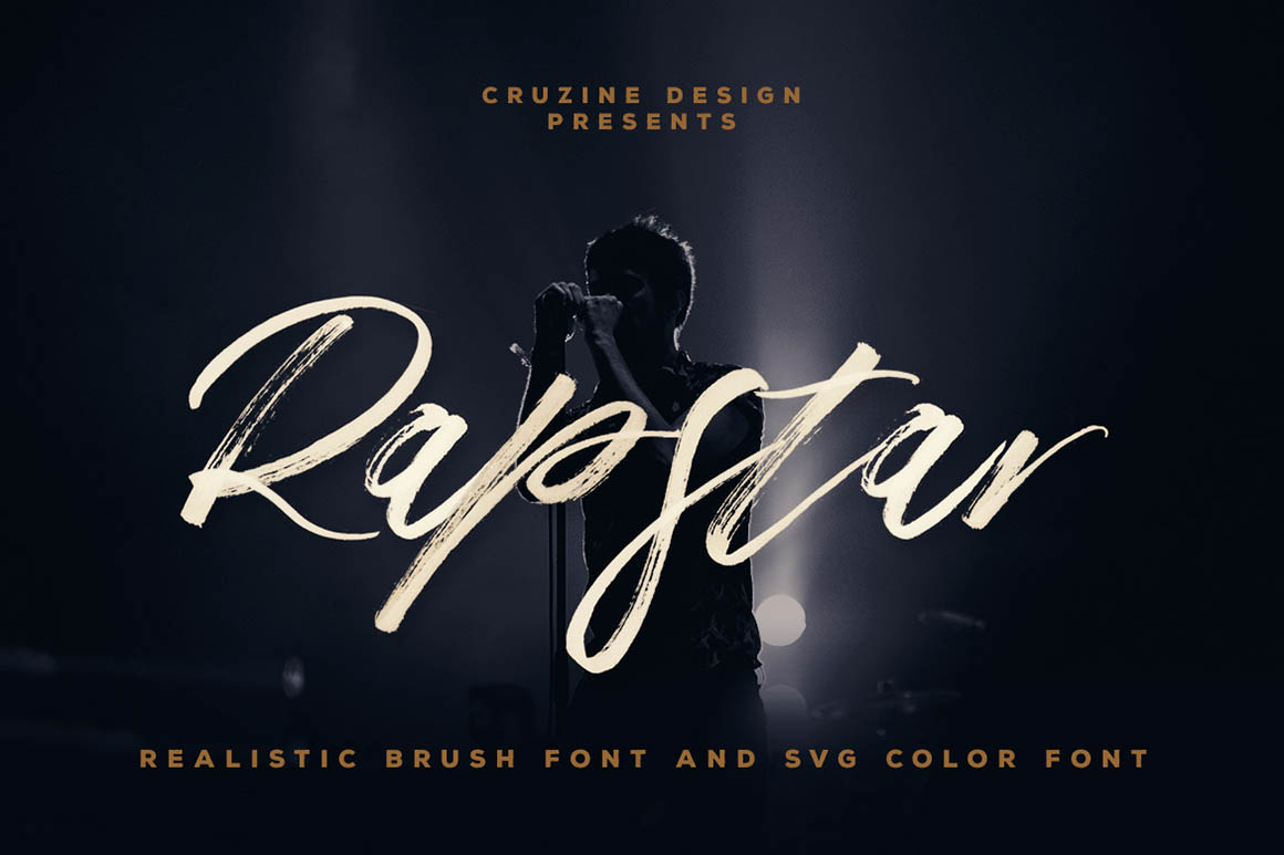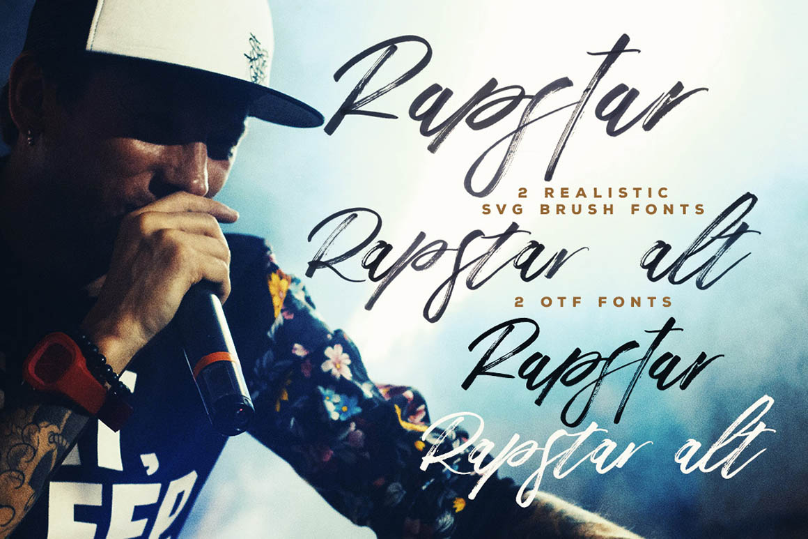 - Rapstar Brush & SVG Font – 2 regular fonts + 2 SVG fonts
