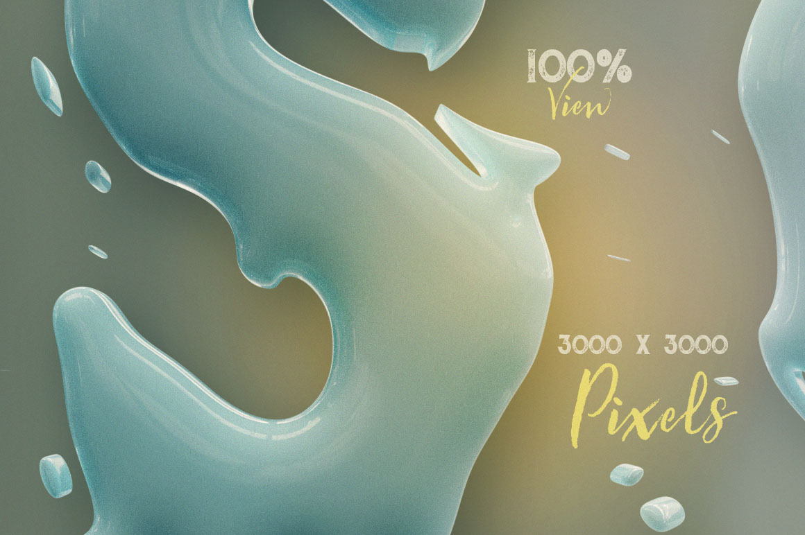 Hi-res liquid or water style letter renders (3000×3000 – but letter size is around 1500×2000). Great for your headers, posters, advertisments – any web or print projects. Works great also as a scary horror font 🙂