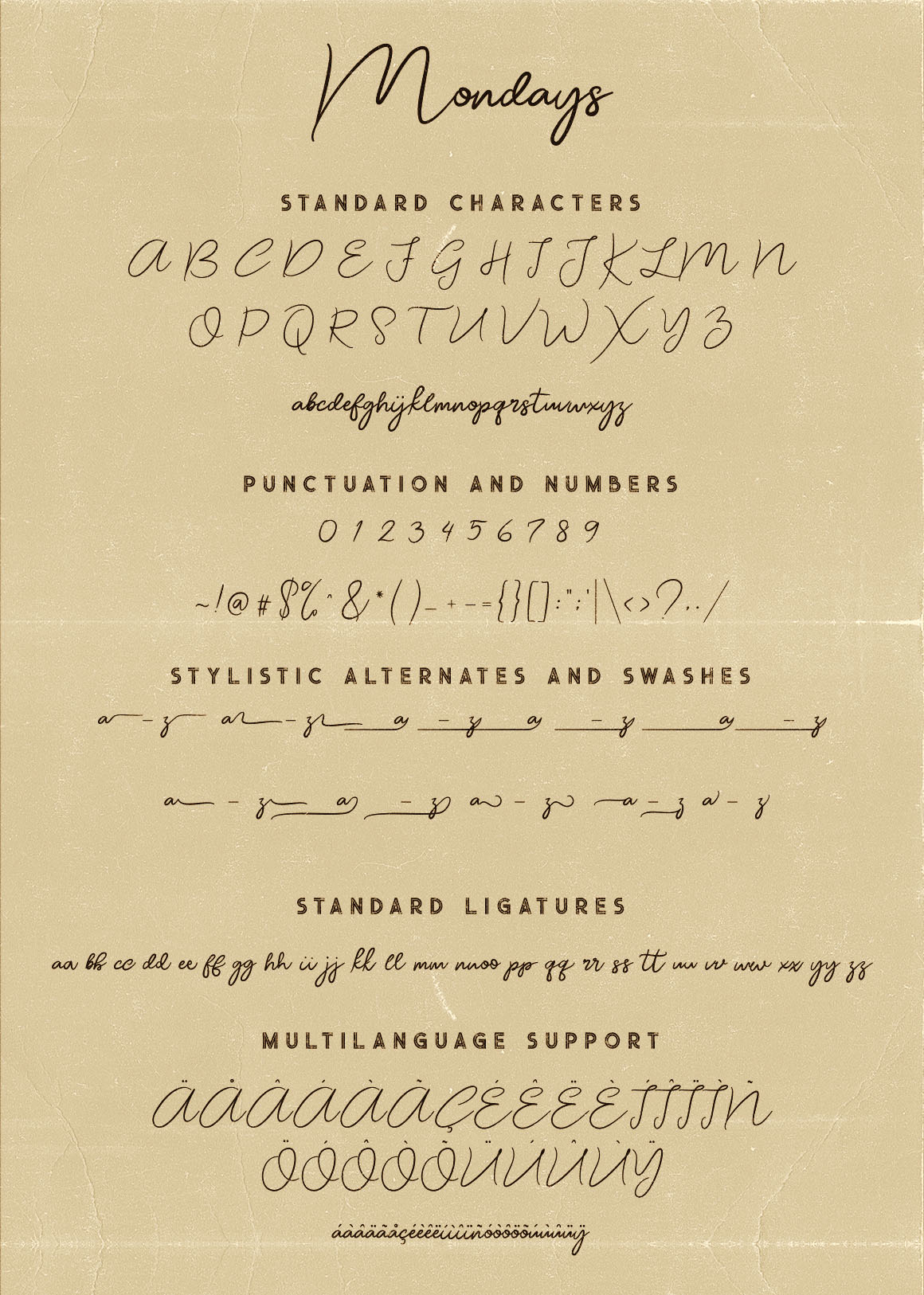 Clean and fancy style script font for your new projects. With multi language support and lot of stylistic alternates & swashes.