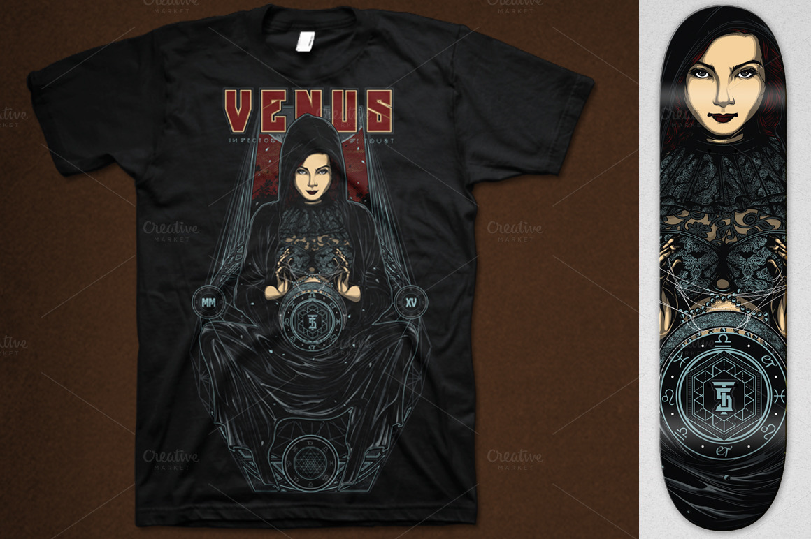 This set of “Venus” are perfect for using on shirt design, poster, CD/DVD cover, skate desk and other creative applications. Includes these files: 1.Ai files (Cs4), layered each colors and resizable 1.eps files (EPS10) , layered each colors and resizable 1.Psd files (CS3), layered each colors 1.png files, with transparent background. Including TXT file for free font All file used CMYK color format on 300dpi.