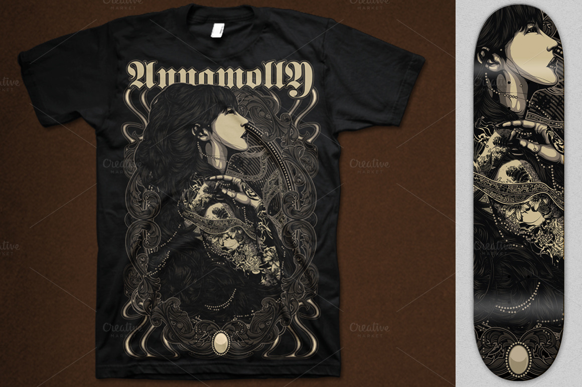 This set of “Annamolly” are perfect for using on shirt design, poster, CD/DVD cover, skate desk and other creative applications. Includes these files: 1.Ai files (Cs4), layered each colors and resizable 1.eps files (EPS10) , layered each colors and resizable 1.Psd files (CS3), layered each colors 1.png files, with transparent background. including .TXT file for font info