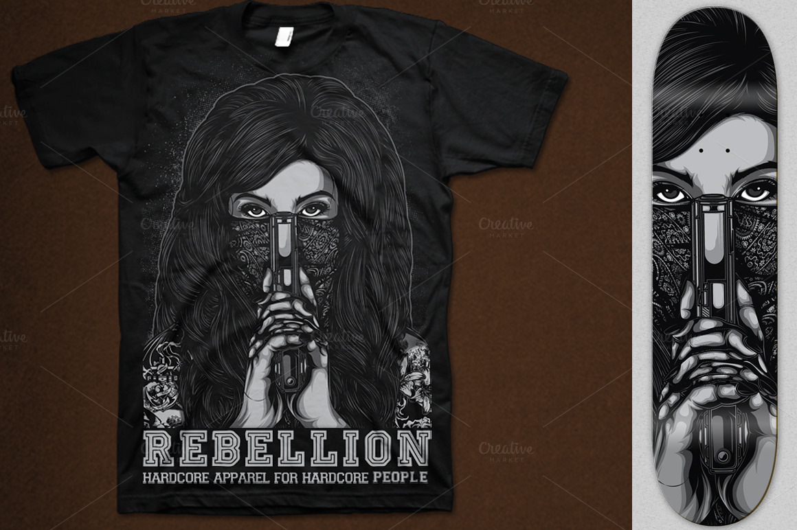 This set of “Rebellion” are perfect for using on shirt design, poster, CD/DVD cover, skate desk and other creative applications. Includes these files: 1.Ai files (Cs4), layered each colors and resizable 1.eps files (EPS10) , layered each colors and resizable 1.Psd files (CS3), layered each colors 1.png files, with transparent background.