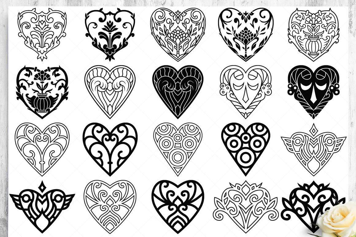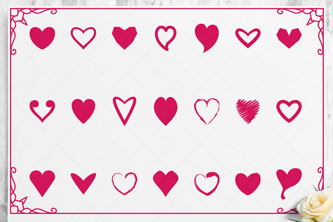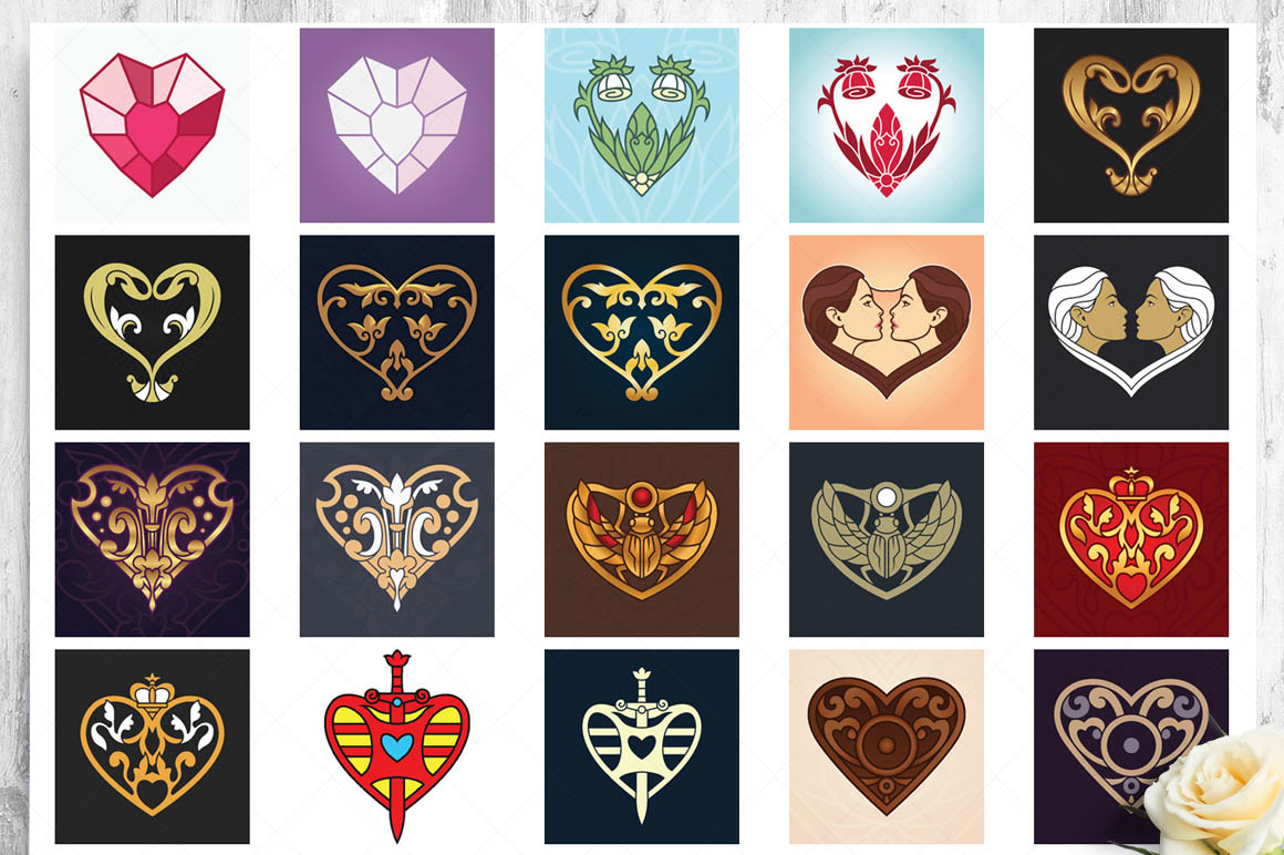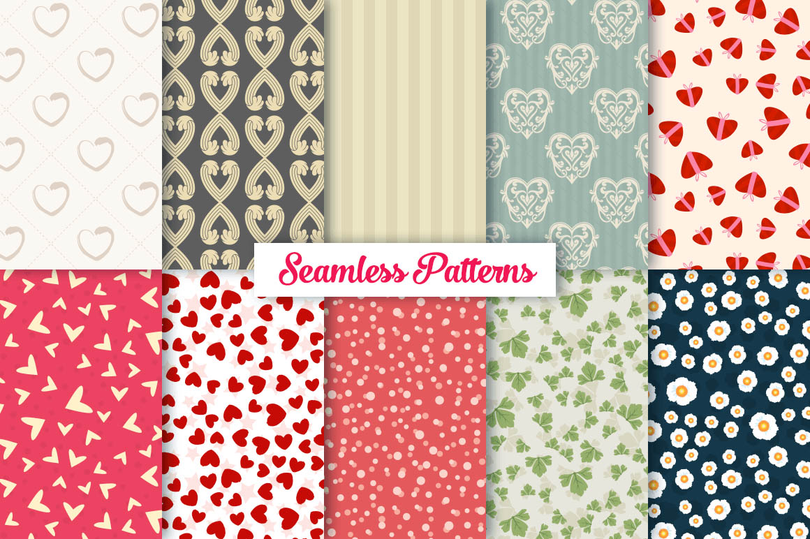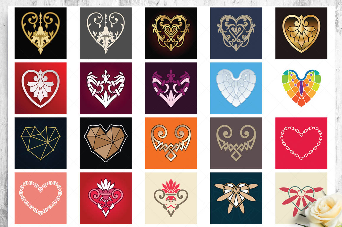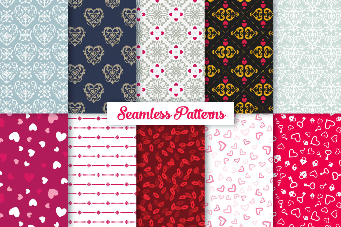 This bundle contain lot of vector heart ornaments, seamless vector & Photoshop patterns. All in various style: vintage, modern, elegant, floral, royal, luxury – great for Love/Wedding/Valentines projects.