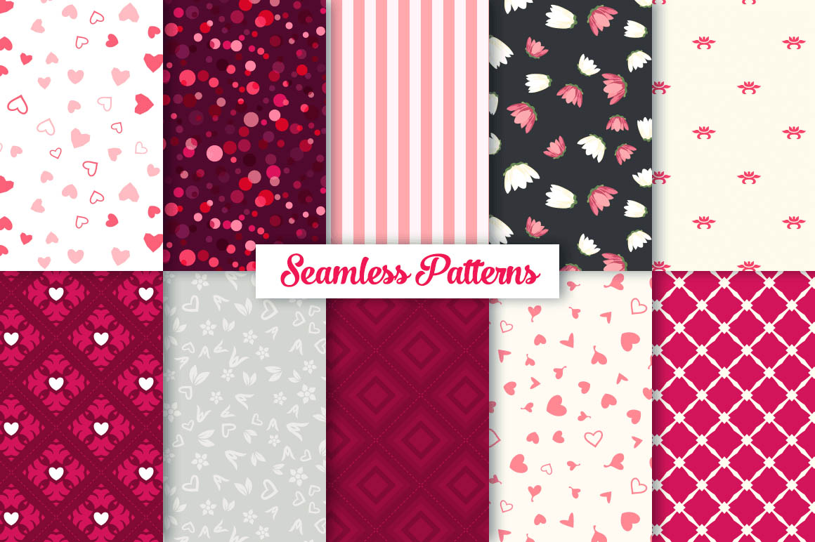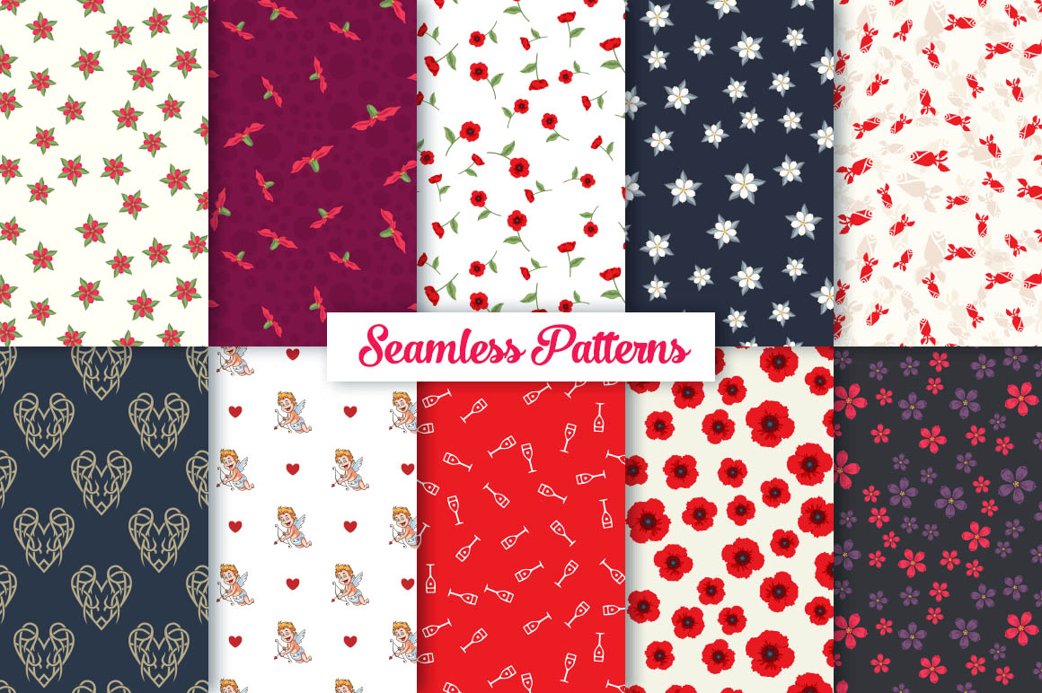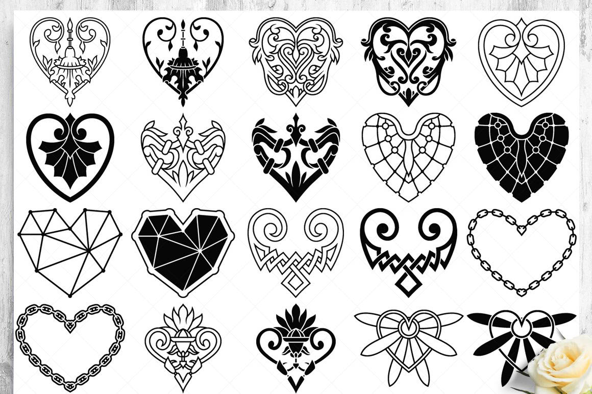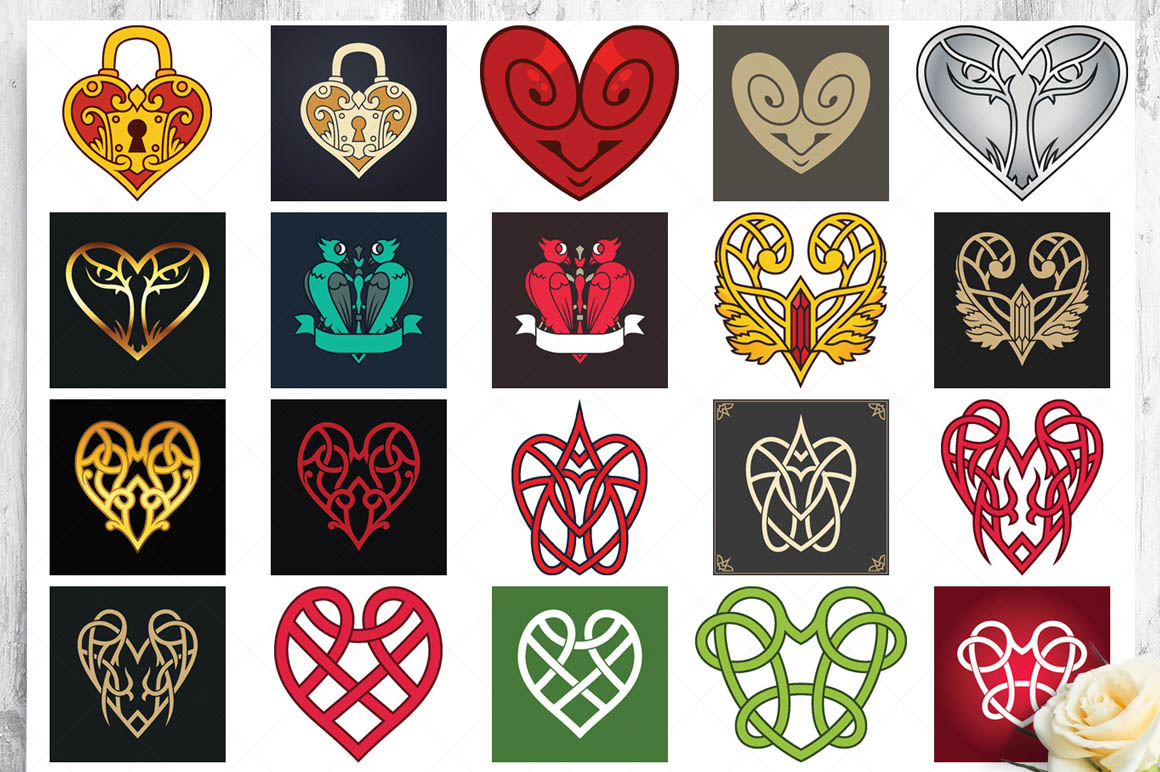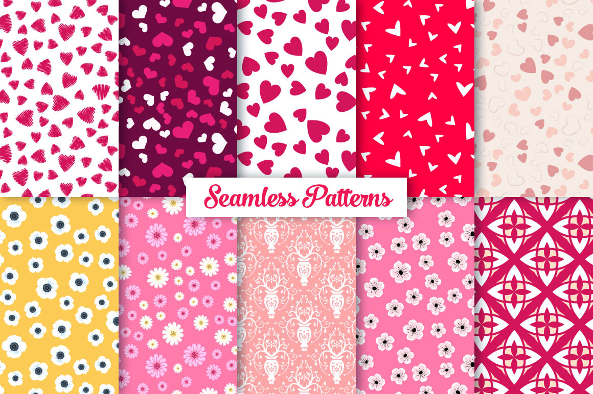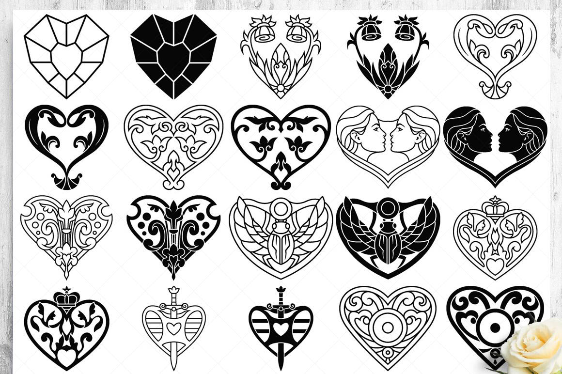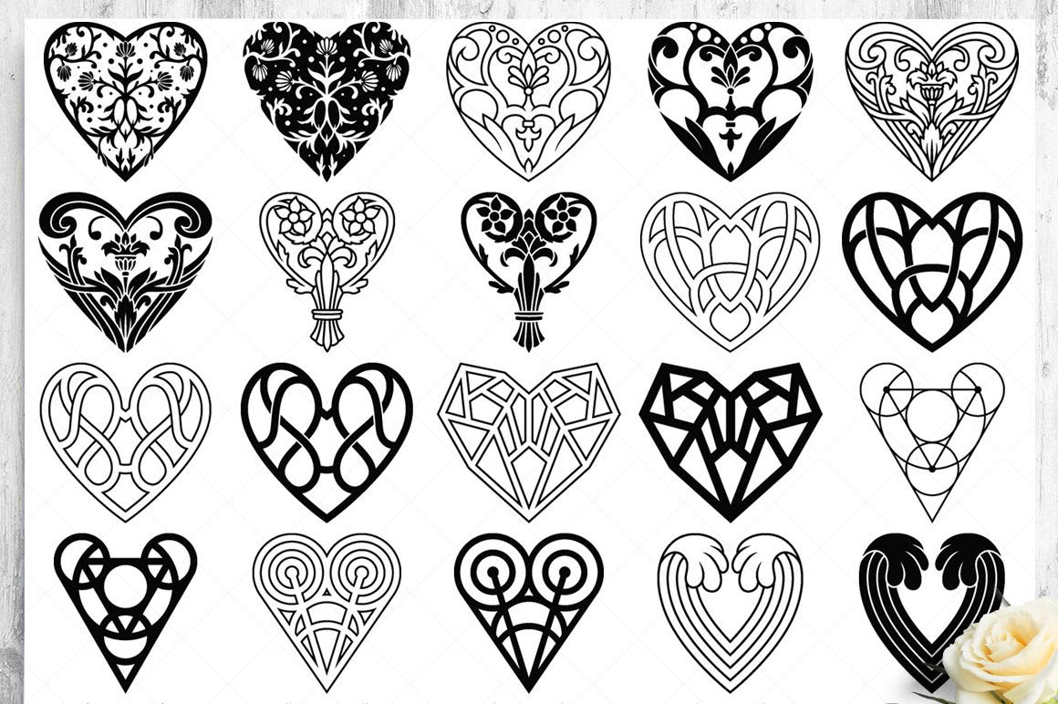 This bundle contain lot of vector heart ornaments, seamless vector & Photoshop patterns. All in various style: vintage, modern, elegant, floral, royal, luxury – great for Love/Wedding/Valentines projects.