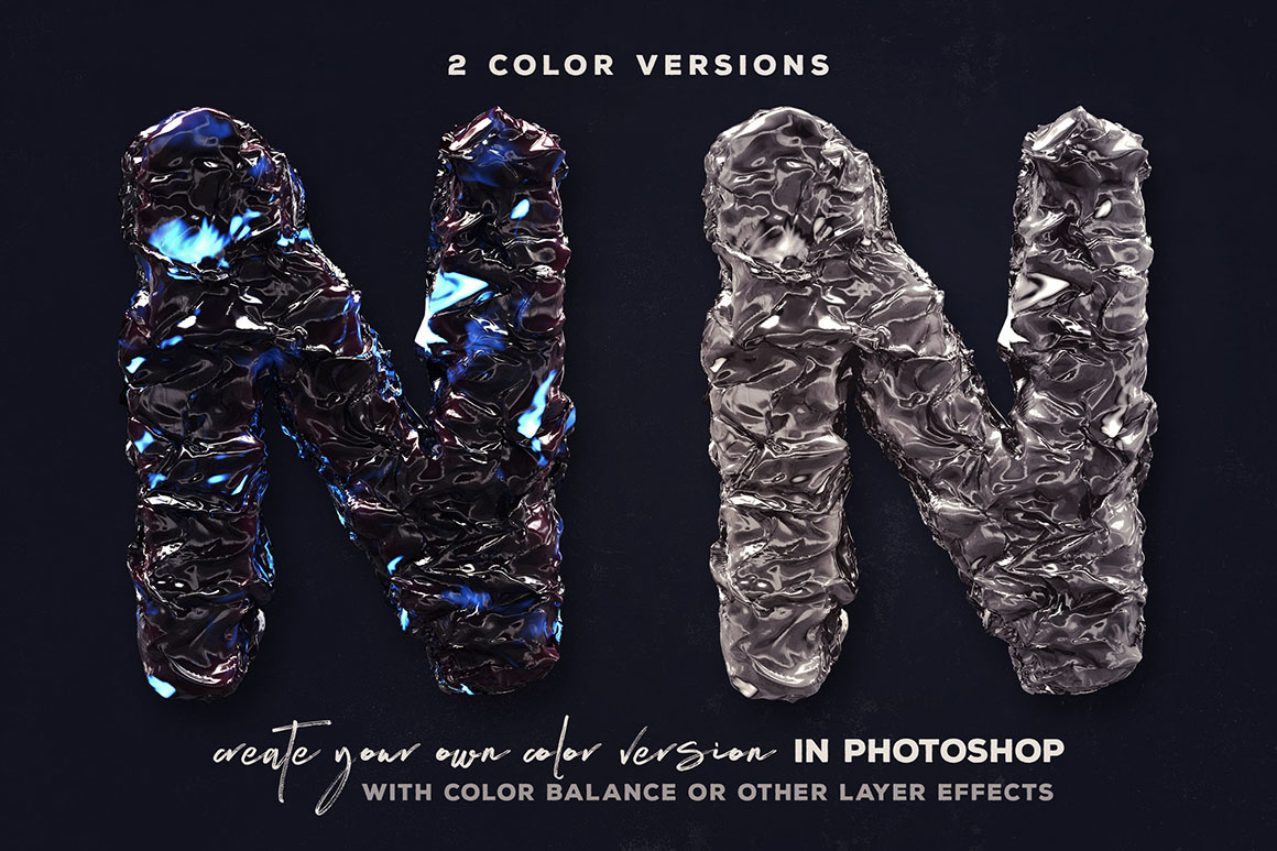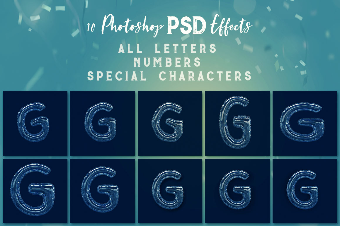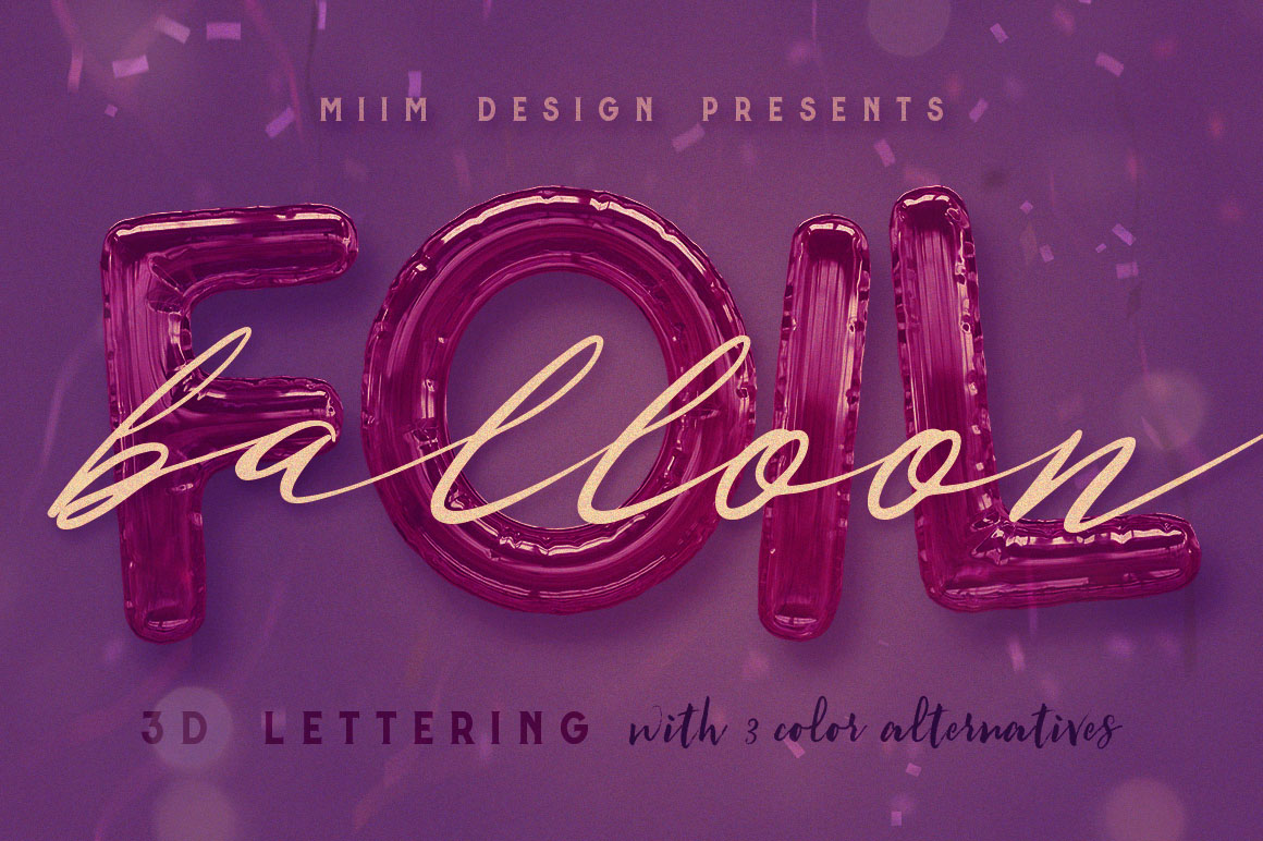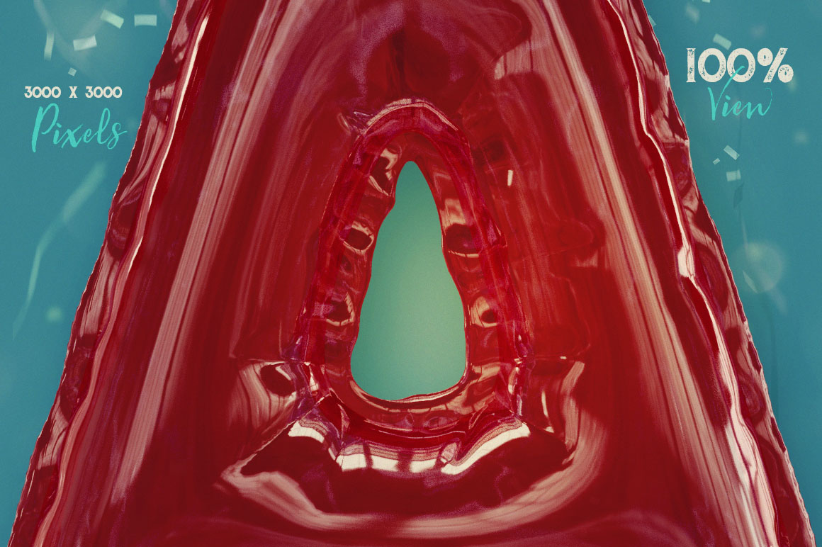 39. Foil Balloon – 3D Lettering from MIIM Design Hi-res 3D foil balloon lettering renders (3000×3000 – but letter size is around 1500×2000). Great for your headers, posters, advertisments – any web or print projects. You’ll find here also layered PSD file with 10 effets (shadows, effects…) – just replace letter in smart object and you’ll see letter in all 10 effects.