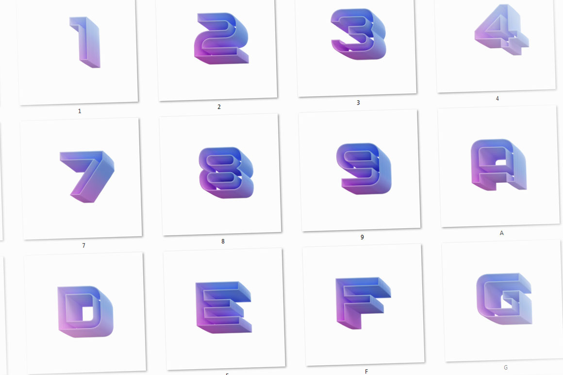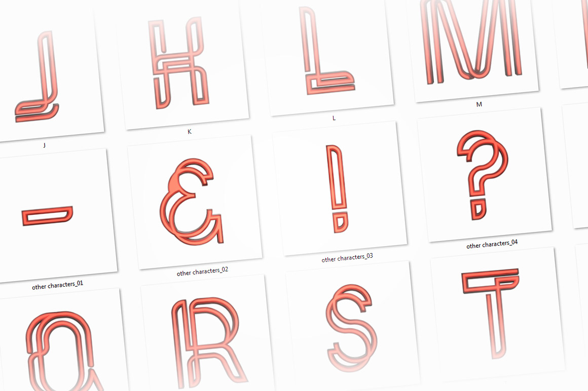 Hi-res & realistic 3D futuristic or connection lettering renders (3000×3000 – but letter size is little bit smaller). Great for your headers, posters, advertisments – any web or print projects.