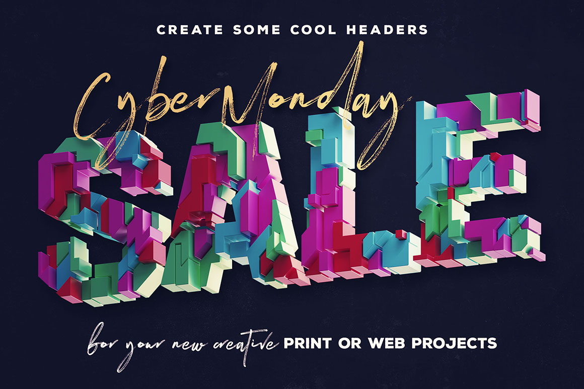Creative and super BIG 3D typography bundle 2 with 50 various lettering sets – 7 lettering or 3D image alphabet sets in 1 BIG bundle! All are great for any print or web projects, so maybe it’s time to add something creative and unique to your typography toolbox 😉