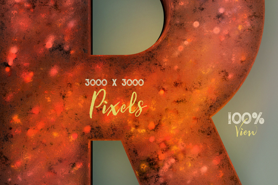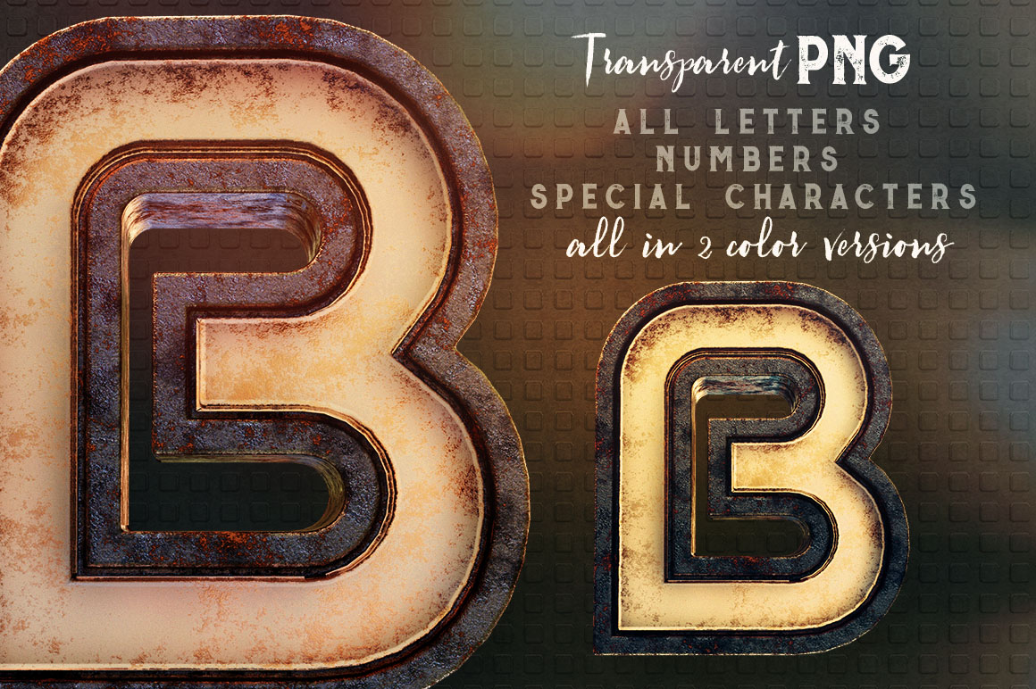 Hi-res & realistic 3D industrial or rusty future lettering renders (3000×3000 – but letter size is little bit smaller). Great for your headers, posters, advertisments – any web or print projects.