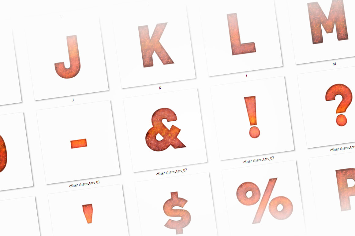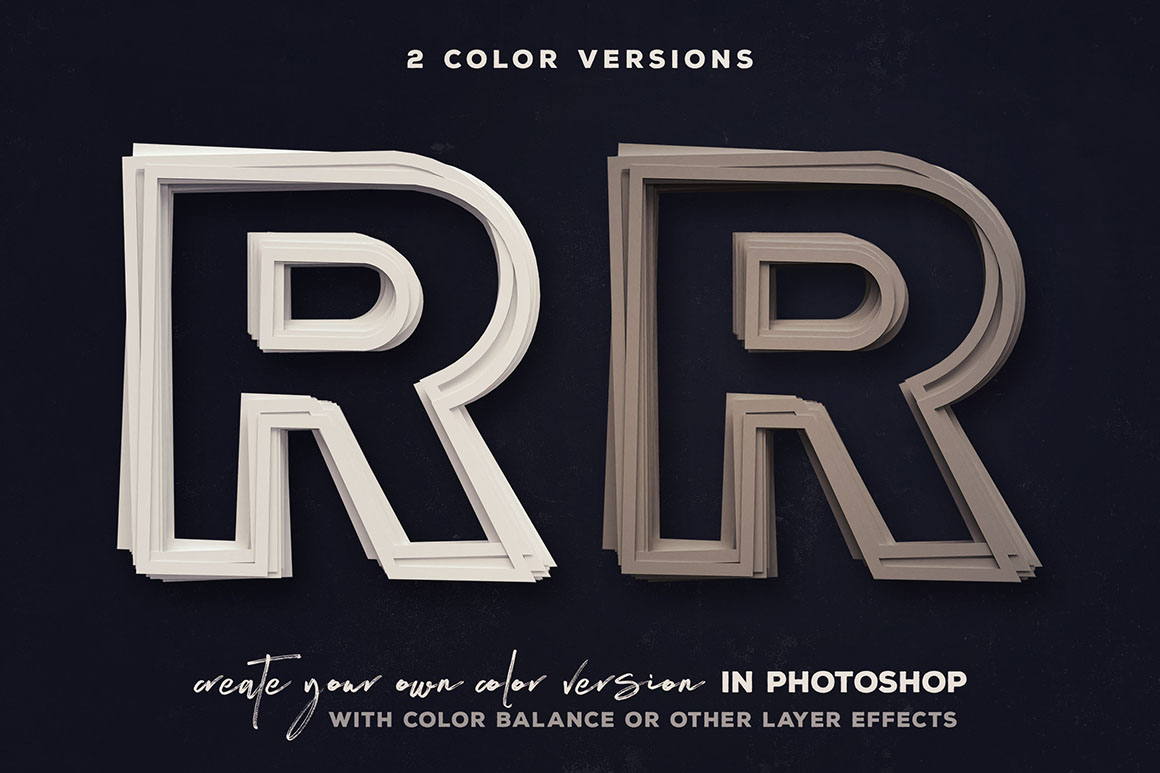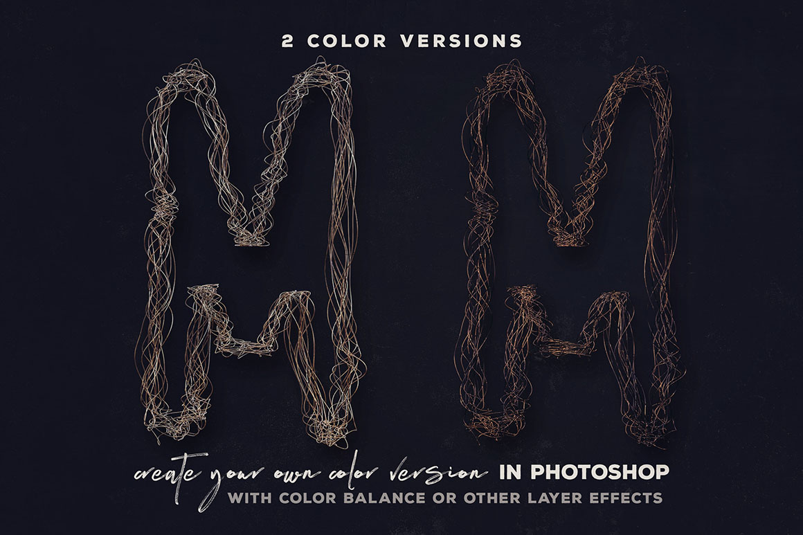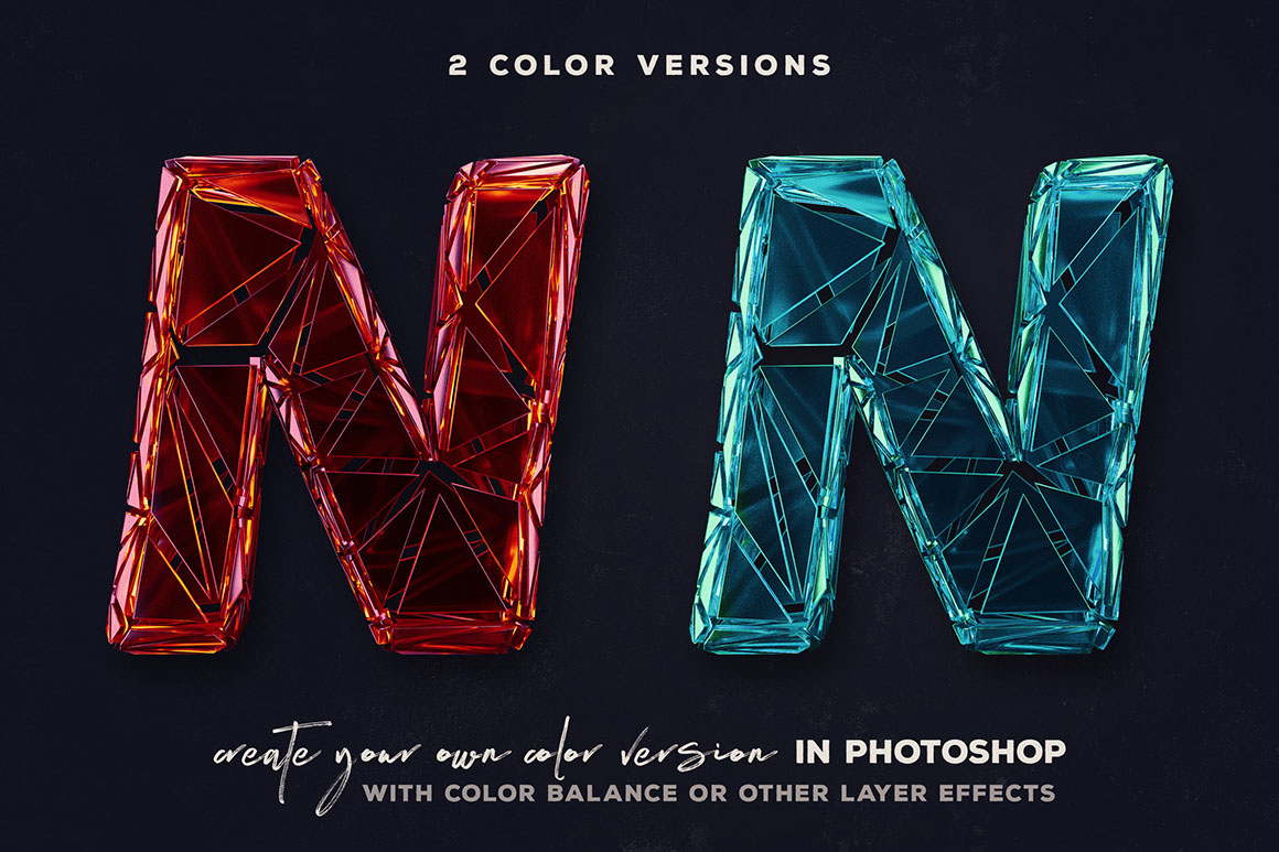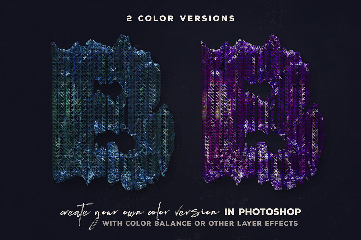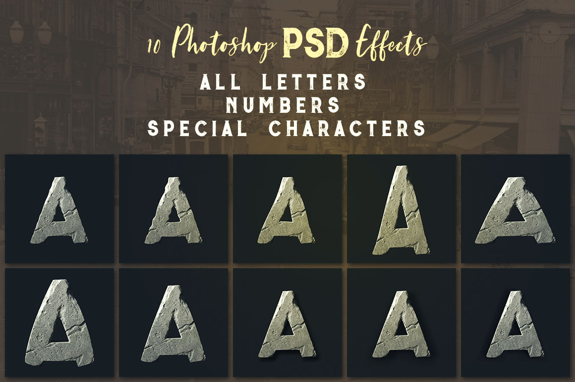 - Layered Photoshop PSD file with 10 effects for these letters – with smart object
