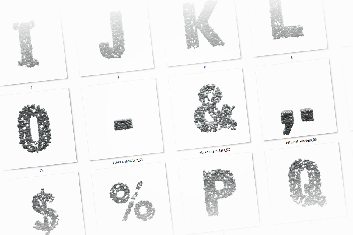 Hi-res & realistic 3D grunge ice lettering renders (3000×3000 – but letter size is little bit smaller). Great for your headers, posters, advertisments – any web or print projects.