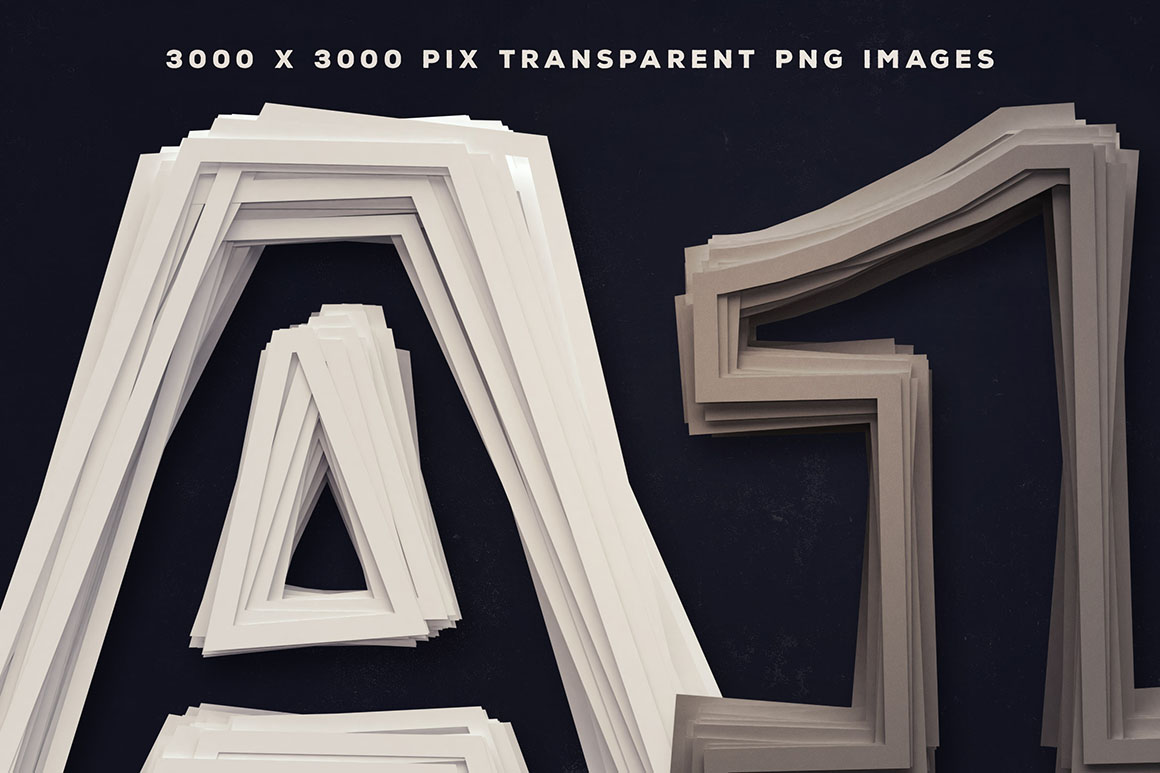 Hi-res & realistic 3D paper cuts lettering renders (3000×3000 – but letter size is little bit smaller). Great for your headers, posters, advertisments – any web or print projects.