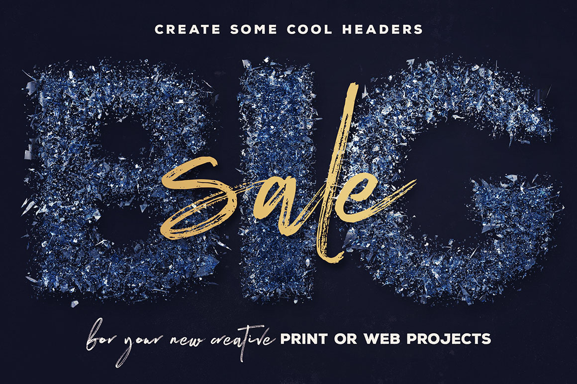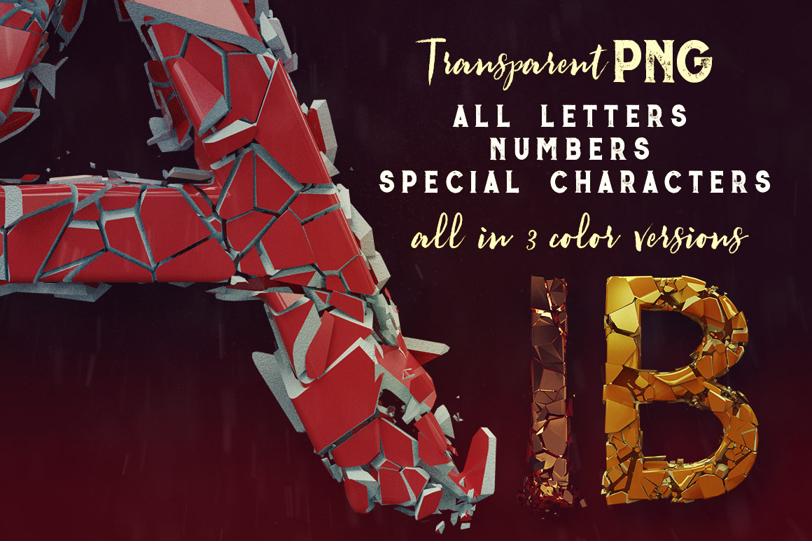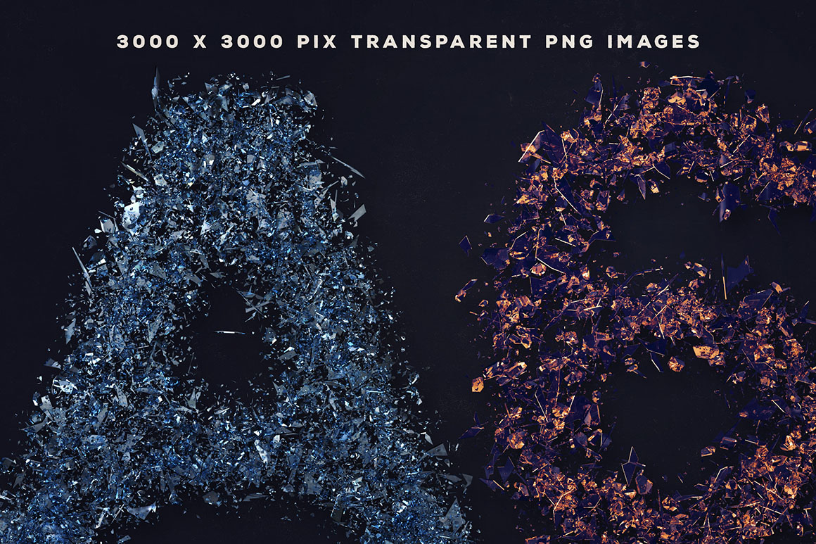 38. Boom: Glass Explosion – 3D Lettering from MIIM Design Hi-res 3D glass explosion lettering renders (3000×3000 – but letter size is around 1500×2000). Great for your headers, posters, advertisments – any web or print projects.