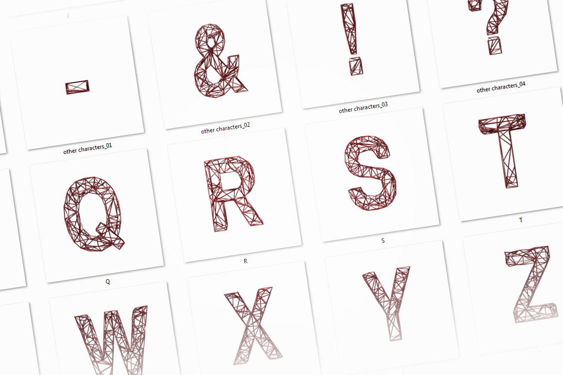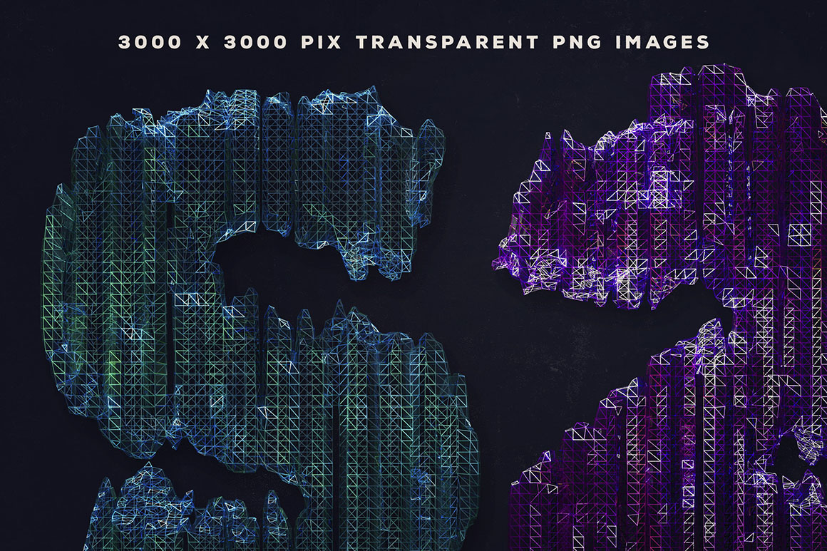 Hi-res 3D geometric or polygonal lettering renders (3000×3000 – but letter size is little bit smaller). Great for your headers, posters, advertisments – any web or print projects.