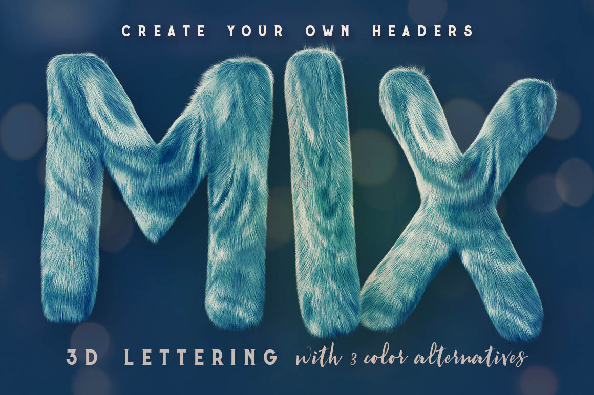 41. Funny Furry – 3D Lettering from MIIM Design Hi-res 3D funny style furry lettering renders (3000×3000 – but letter size is little bit smaller). Great for your headers, posters, advertisments – any web or print projects. You’ll find here also layered PSD file with 10 effets (shadows, effects…) – just replace letter in smart object and you’ll see letter in all 10 effects.