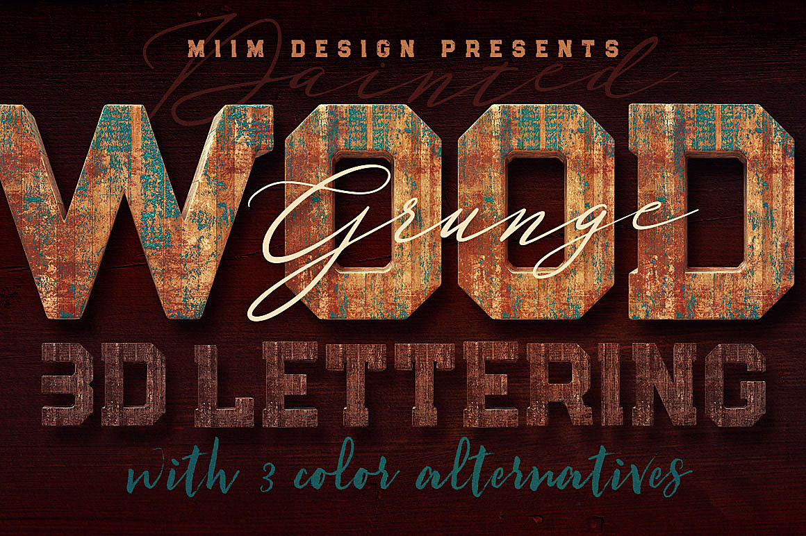 49. Grunge Painted Wood – 3D Lettering from MIIM Design