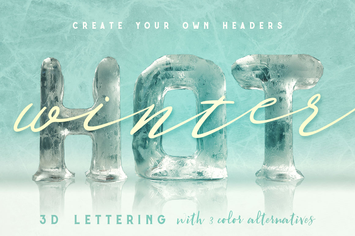 36. Ice Cold – 3D Lettering from MIIM Design Hi-res 3D ice & gold lettering renders (3000×3000 – but letter size is around 1500×2000). Great for your headers, posters, advertisments – any web or print projects.