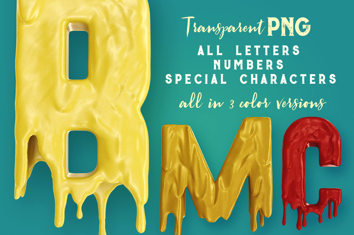 28. Honey Honey – 3D Lettering from MIIM Design Hi-res & realistic 3D honey or liquid lettering renders (3000×3000 – but letter size is little bit smaller). Great for your headers, posters, advertisments – any web or print projects.