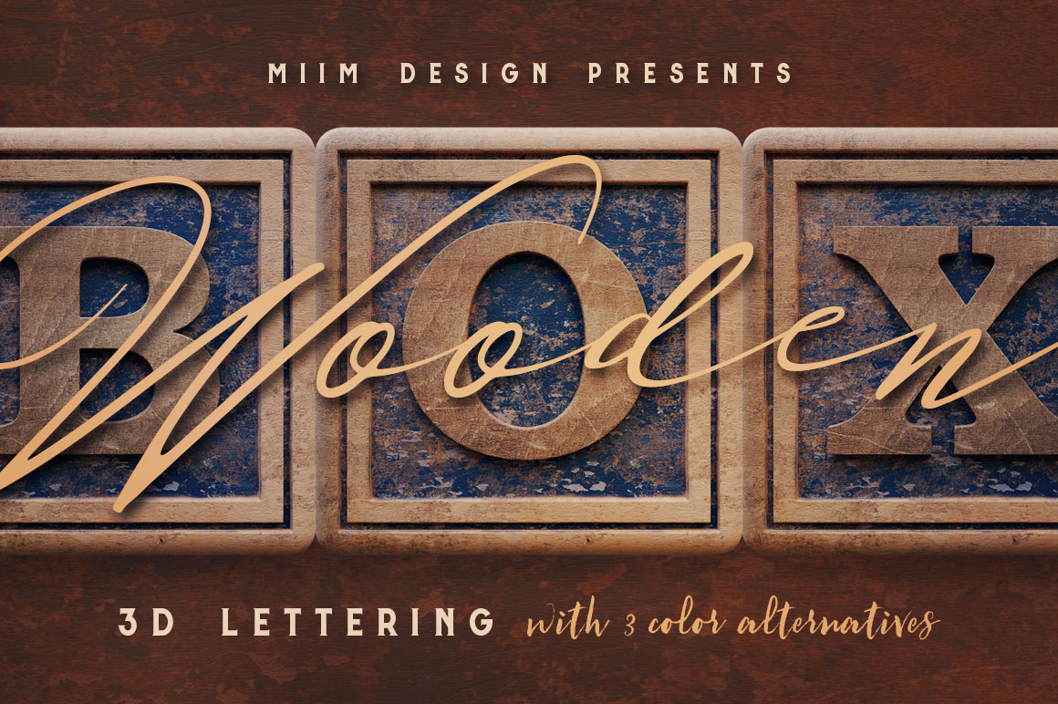 43. Vintage Wooden Box – 3D Lettering from MIIM Design Hi-res 3D wooden box lettering renders with vintage and grunge style (3000×3000 – but letter size is little bit smaller). Great for your headers, posters, advertisments – any web or print projects. You’ll find here also layered PSD file with 10 effets (shadows, effects…) – just replace letter in smart object and you’ll see letter in all 10 effects.