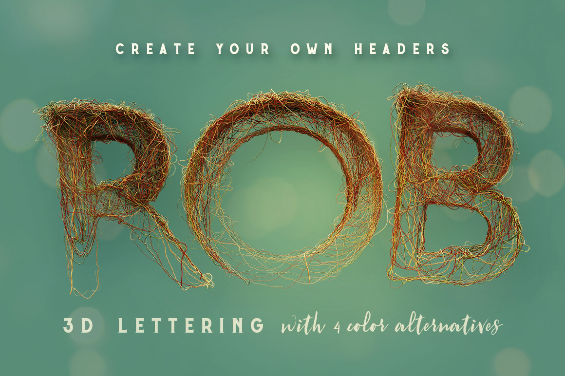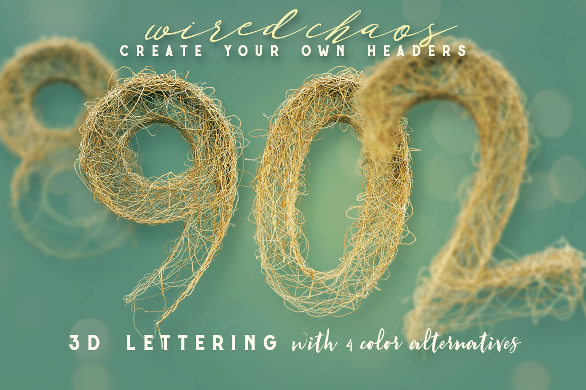 40. Wired Chaos – 3D Lettering from MIIM Design Hi-res 3D wired chaos lettering renders (3000×3000 – but letter size is little bit smaller). Great for your headers, posters, advertisments – any web or print projects. You’ll find here also layered PSD file with 10 effets (shadows, effects…) – just replace letter in smart object and you’ll see letter in all 10 effects.
