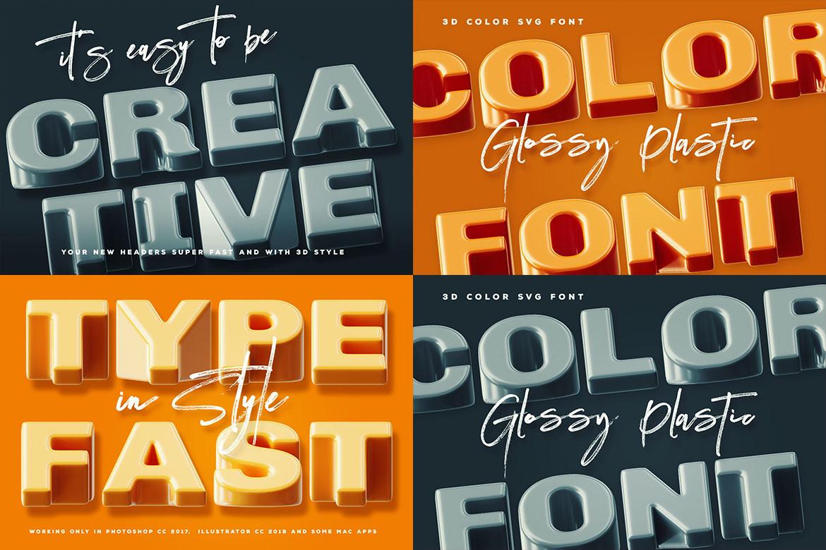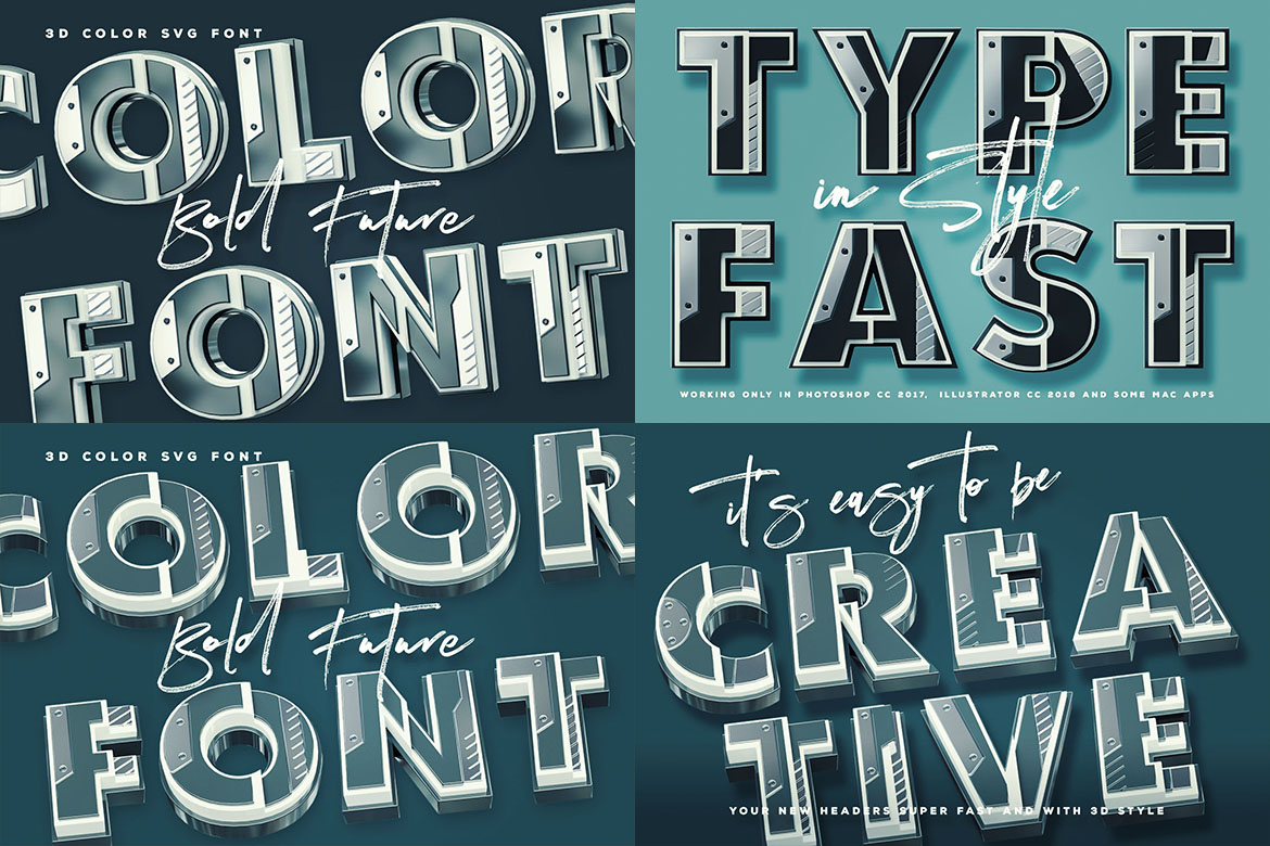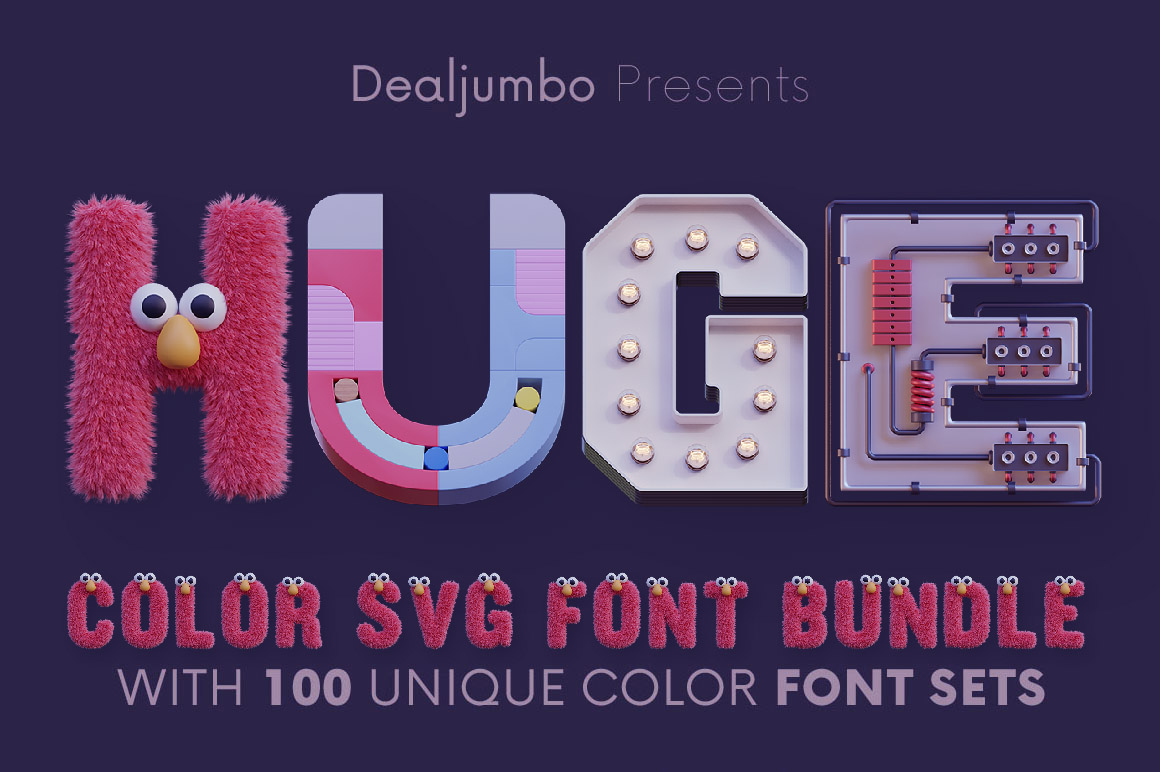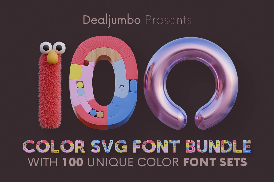 100 super realistic & 3D style color SVG font sets for your new typography projects!