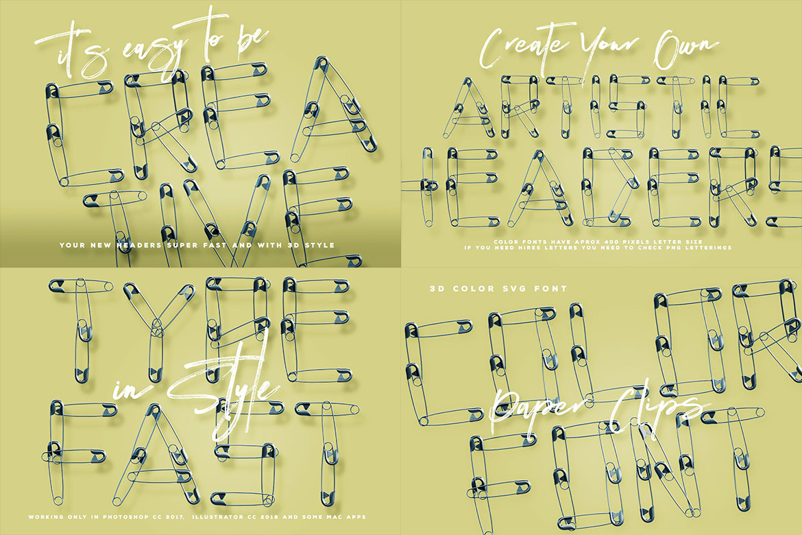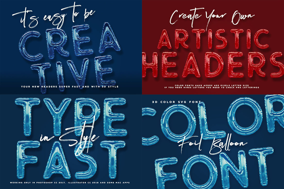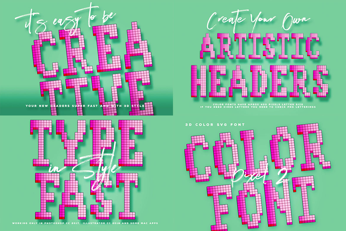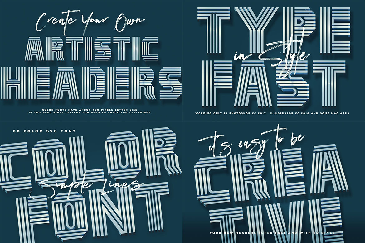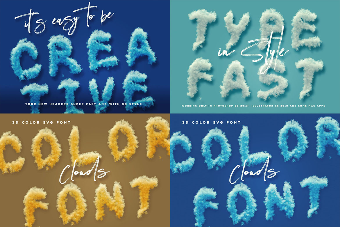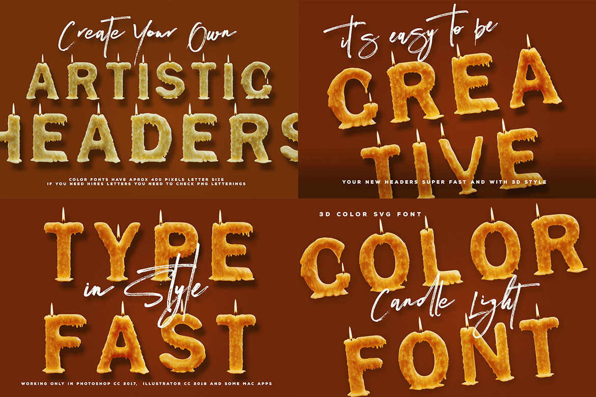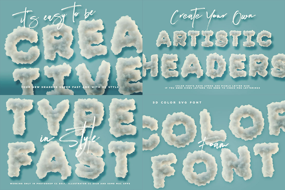 - 100 super realistic & 3D style color SVG font sets for your new typography projects!