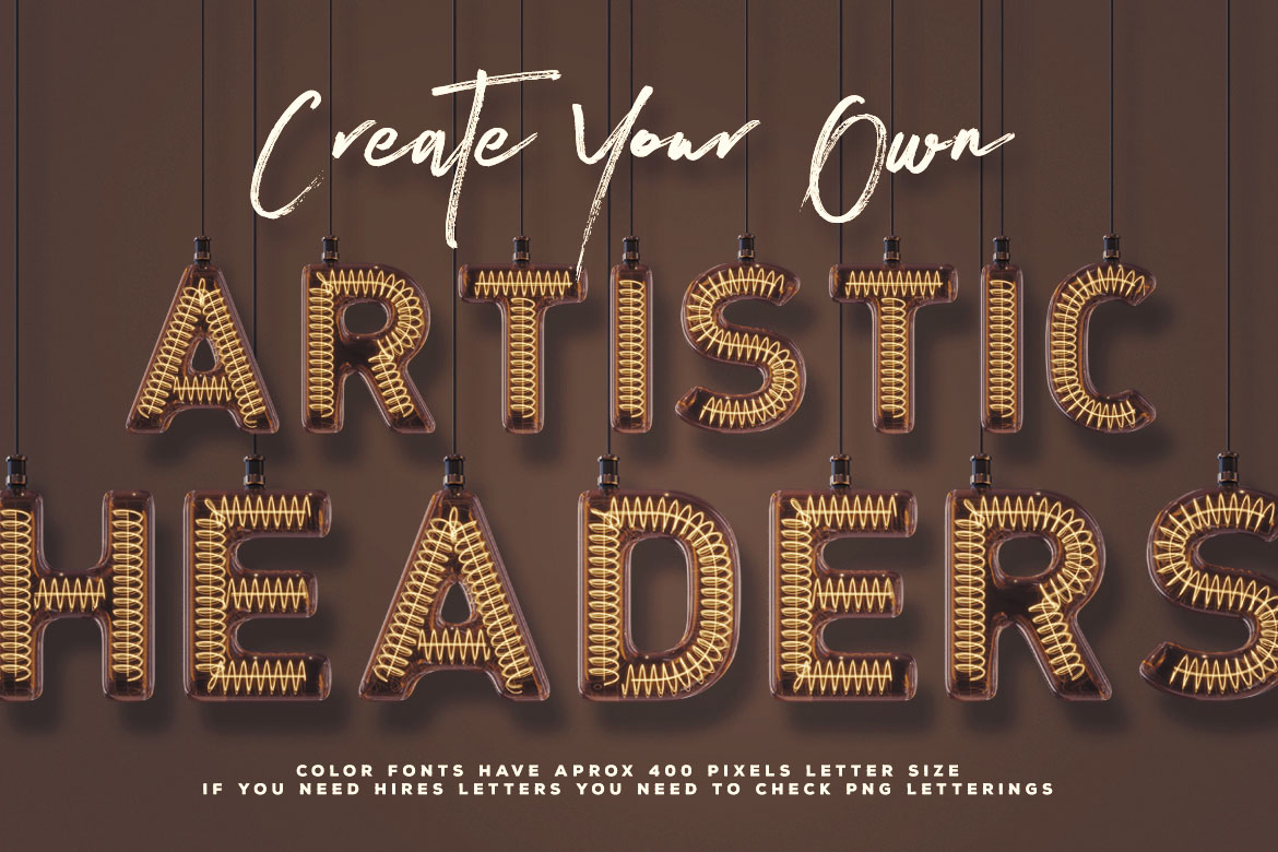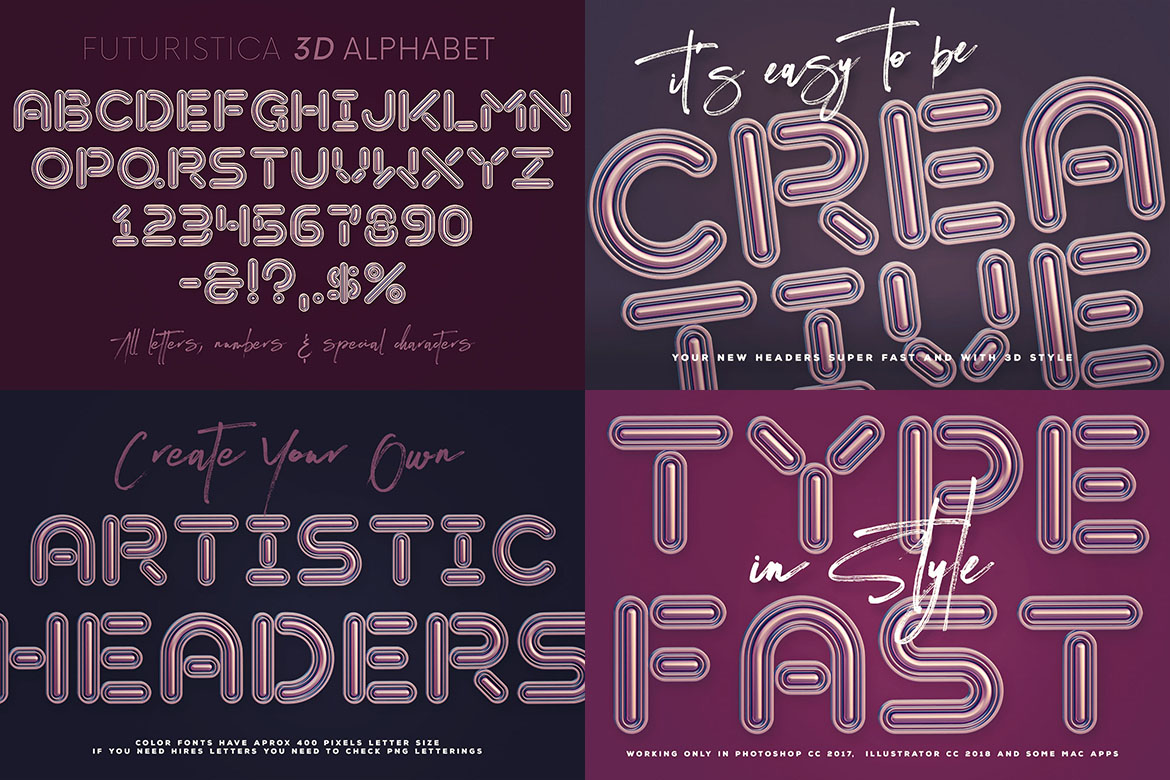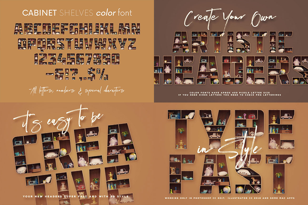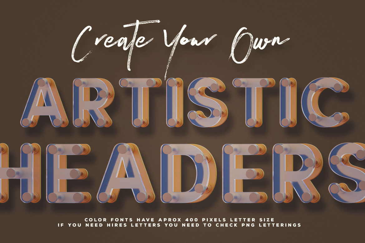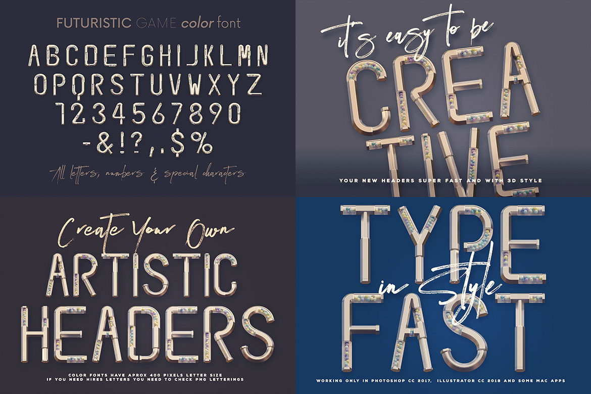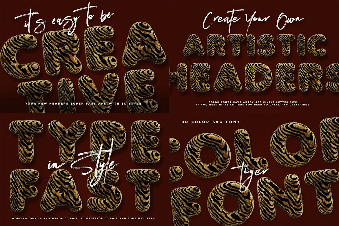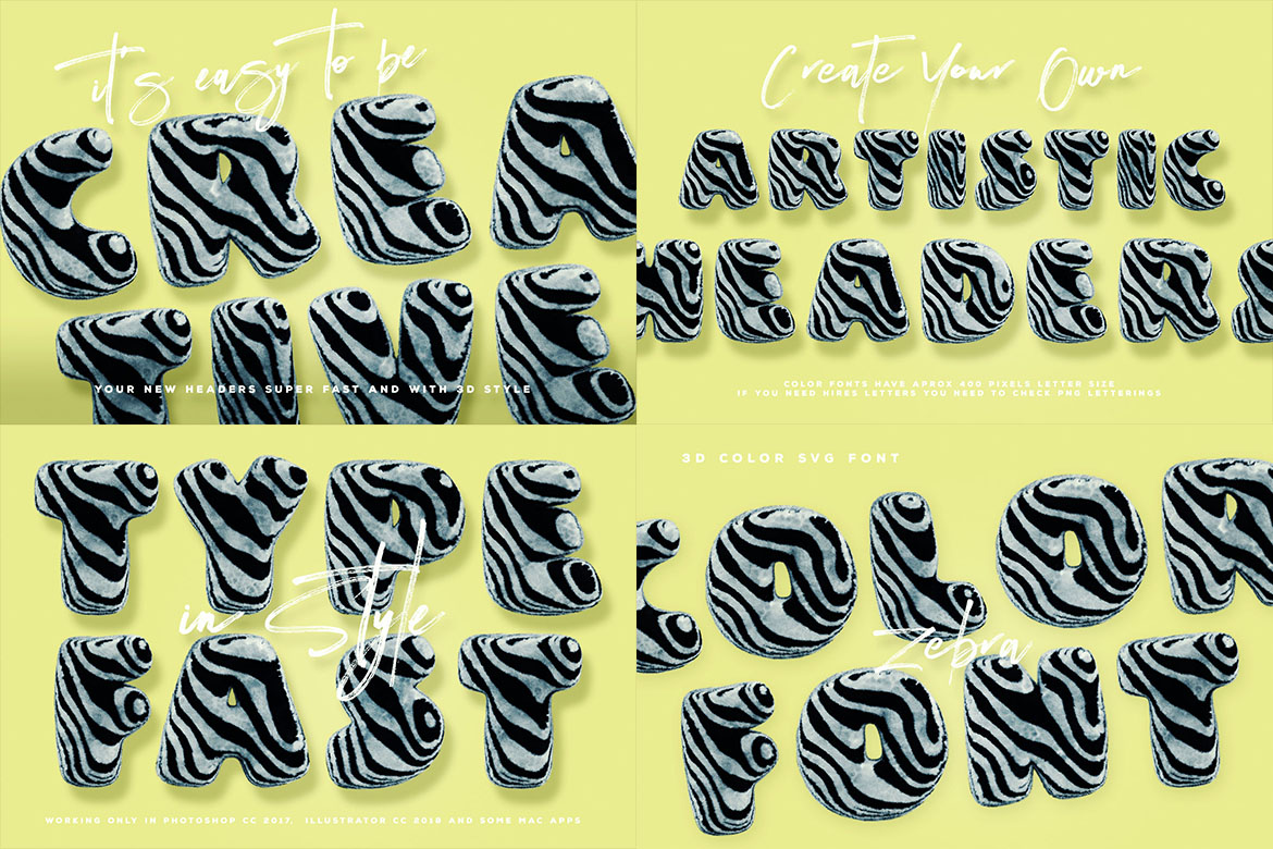 - 100 super realistic & 3D style color SVG font sets for your new typography projects!