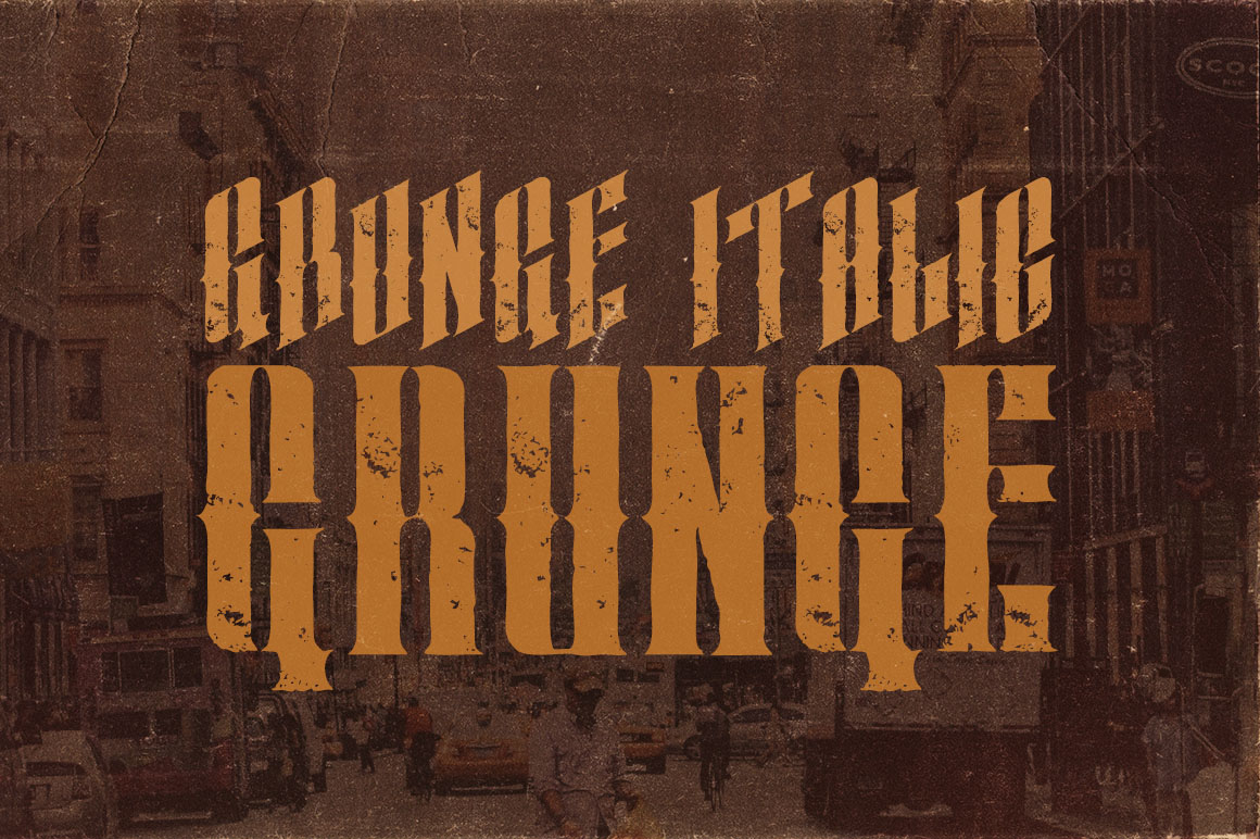 Creative modern and also grunge style custom font with 4 styles: regular, regular italic, grunge and grunge italic, TTF, OTF formats.