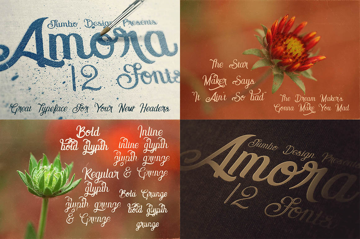 Unique and creative calligraphy script font with 4 styles: regular & gurnge, bold & bold gurnge