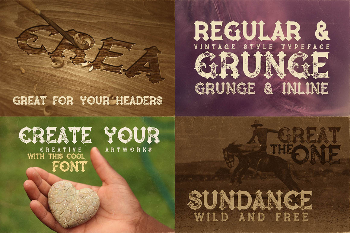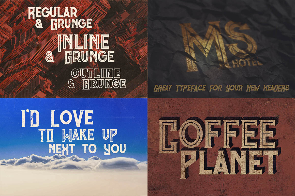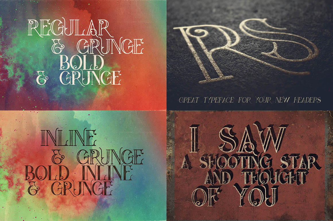 - 8 font files (otf & ttf) – regular & grunge, inline & inline grunge, bold & bold grunge, bold inline & bold inlinegrunge