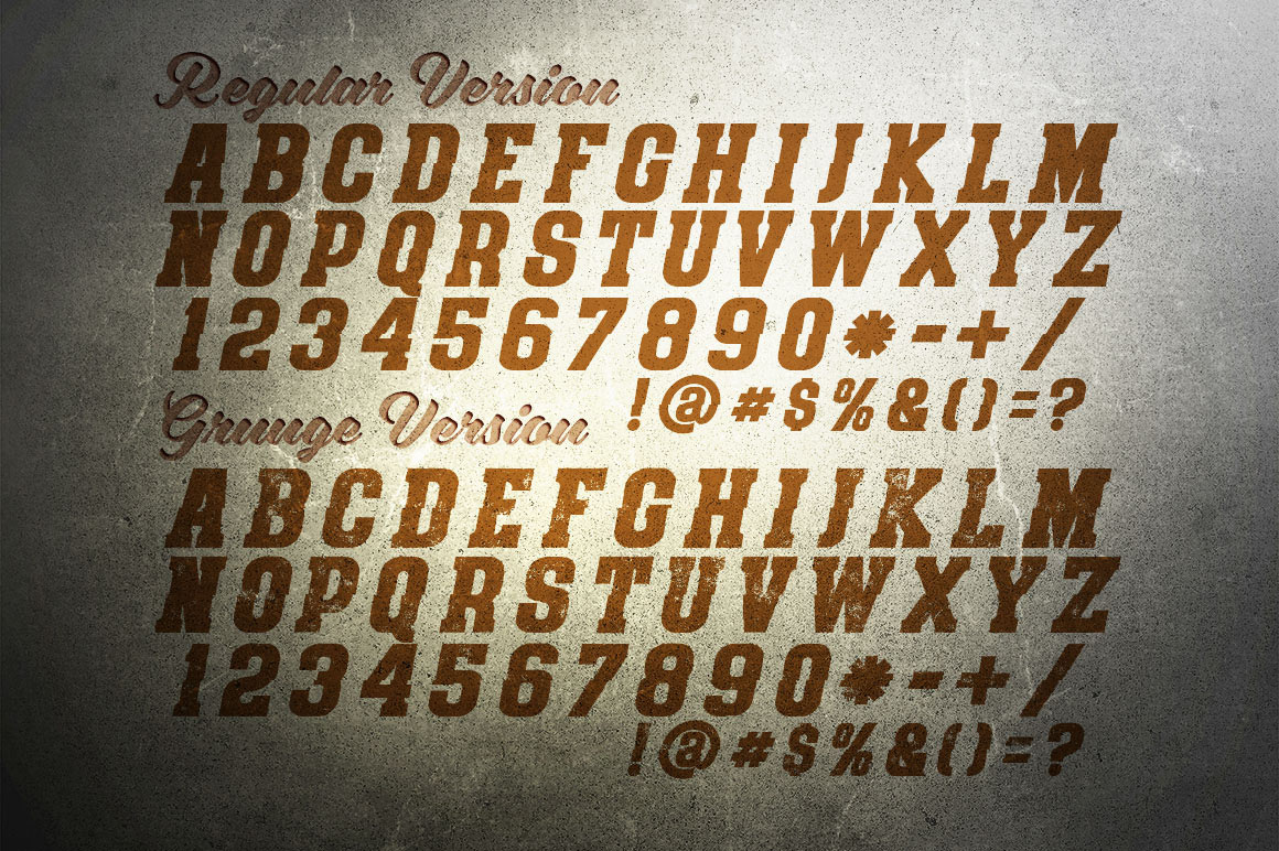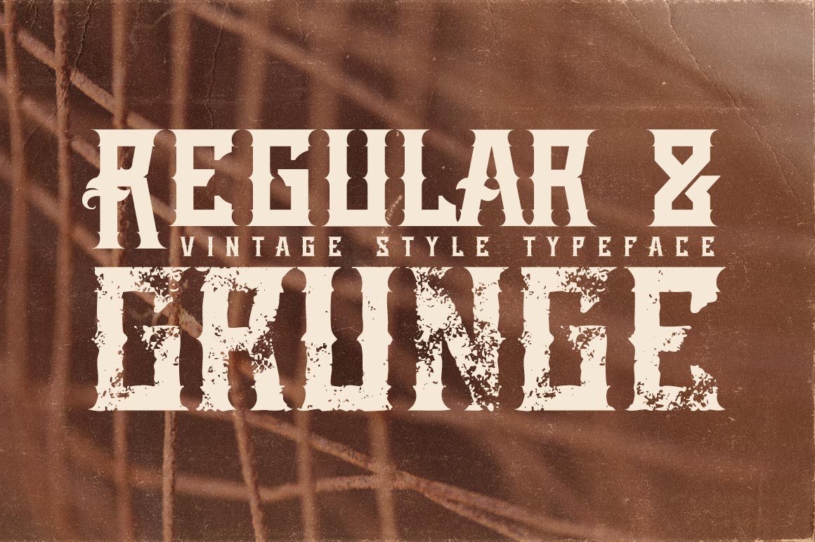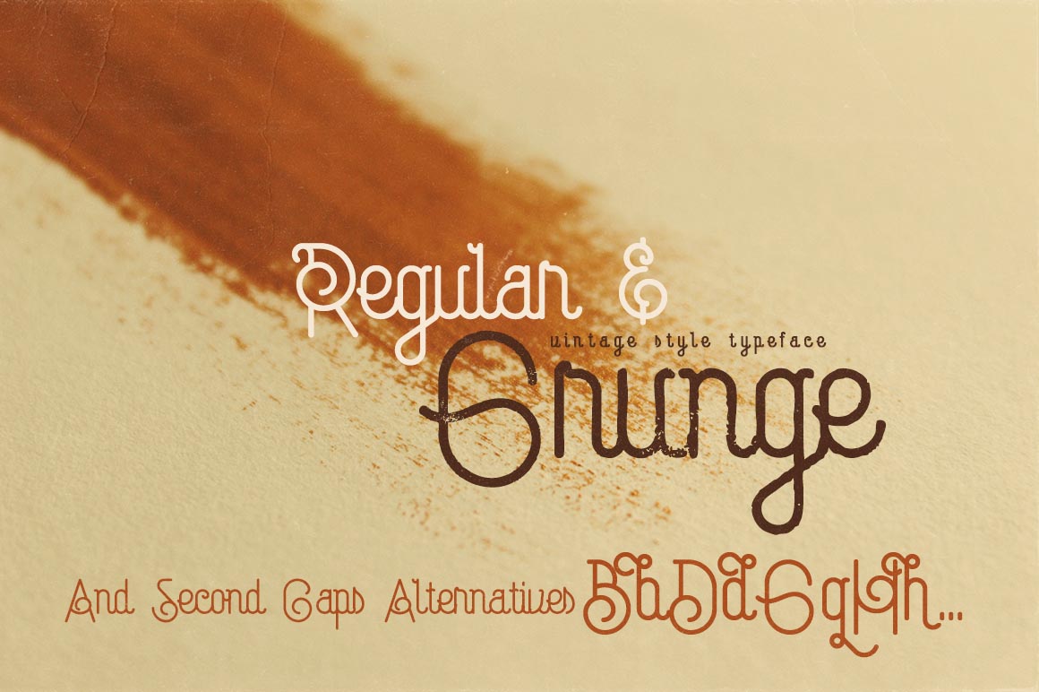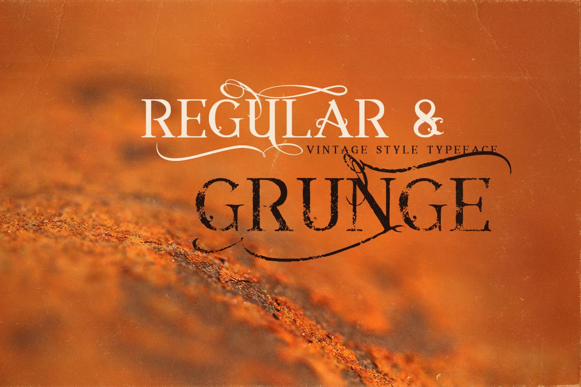 Unique vintage style custom font with 2 styles: regular and grunge. TTF, OTF formats.
