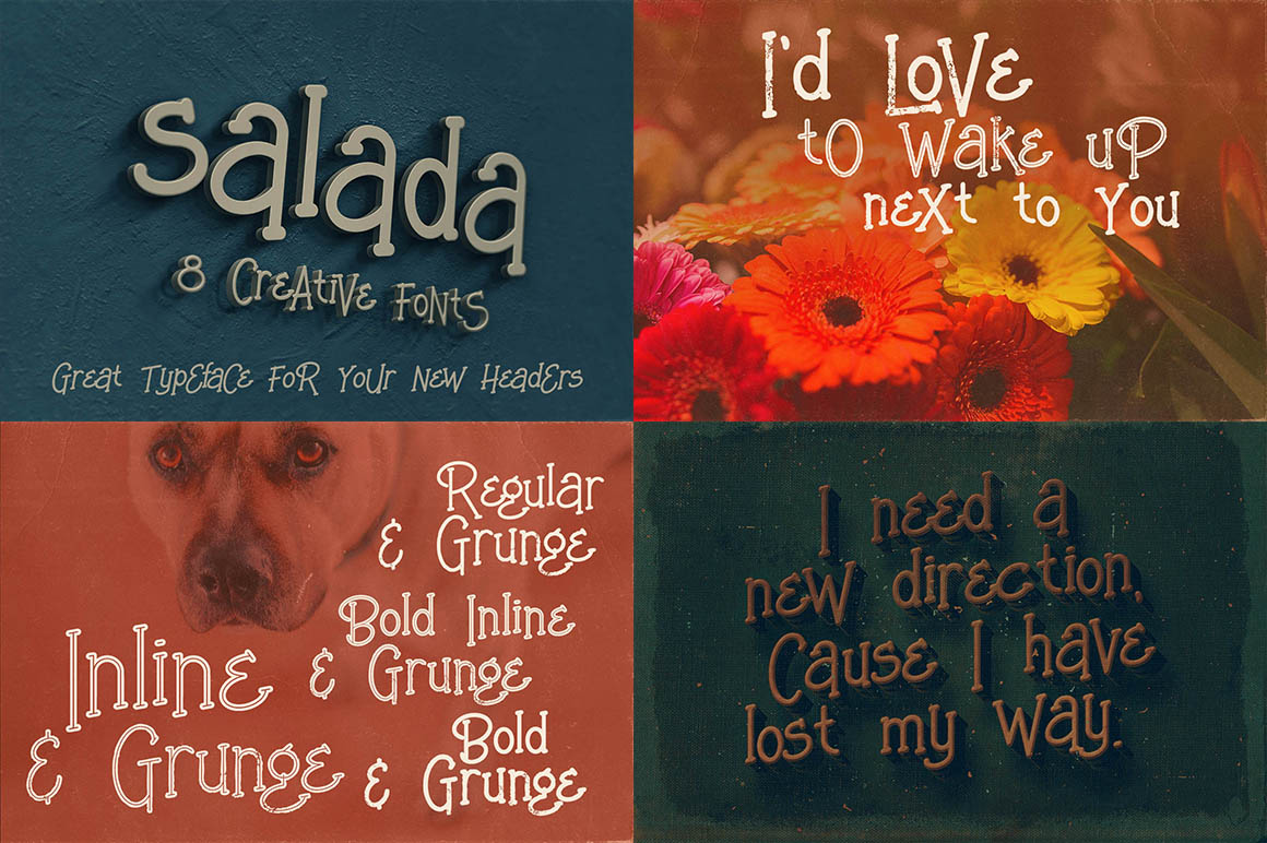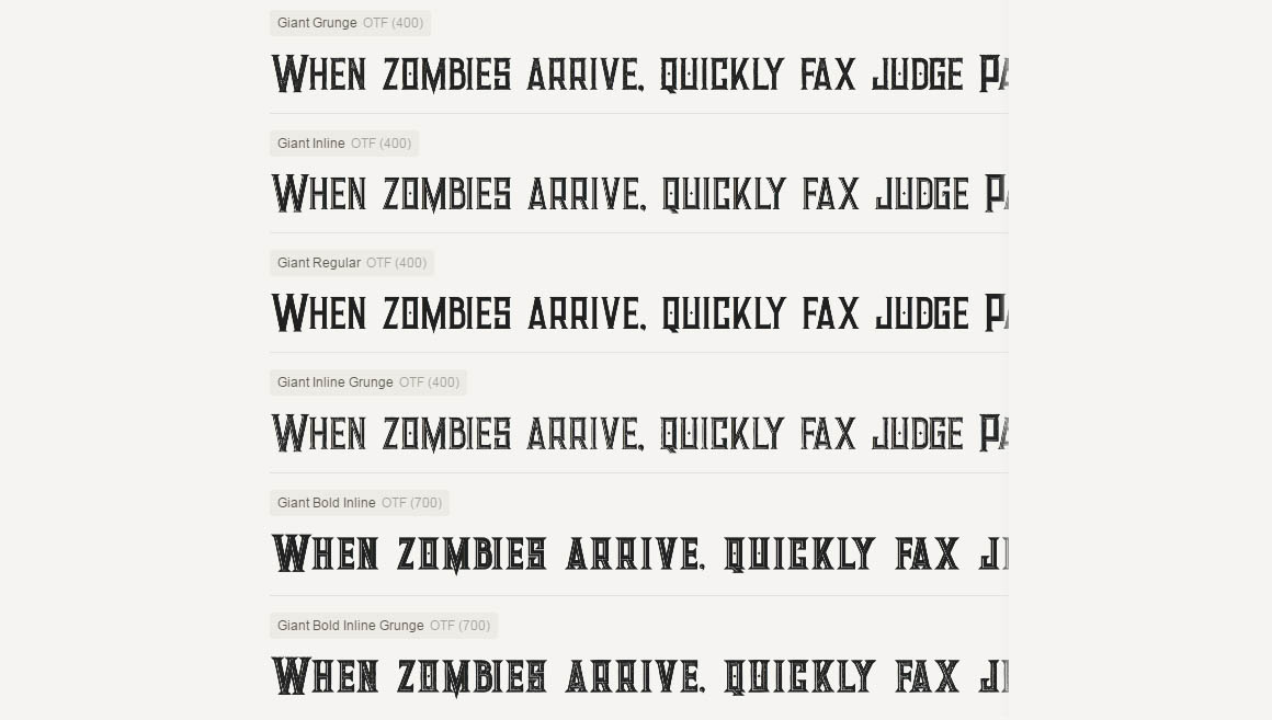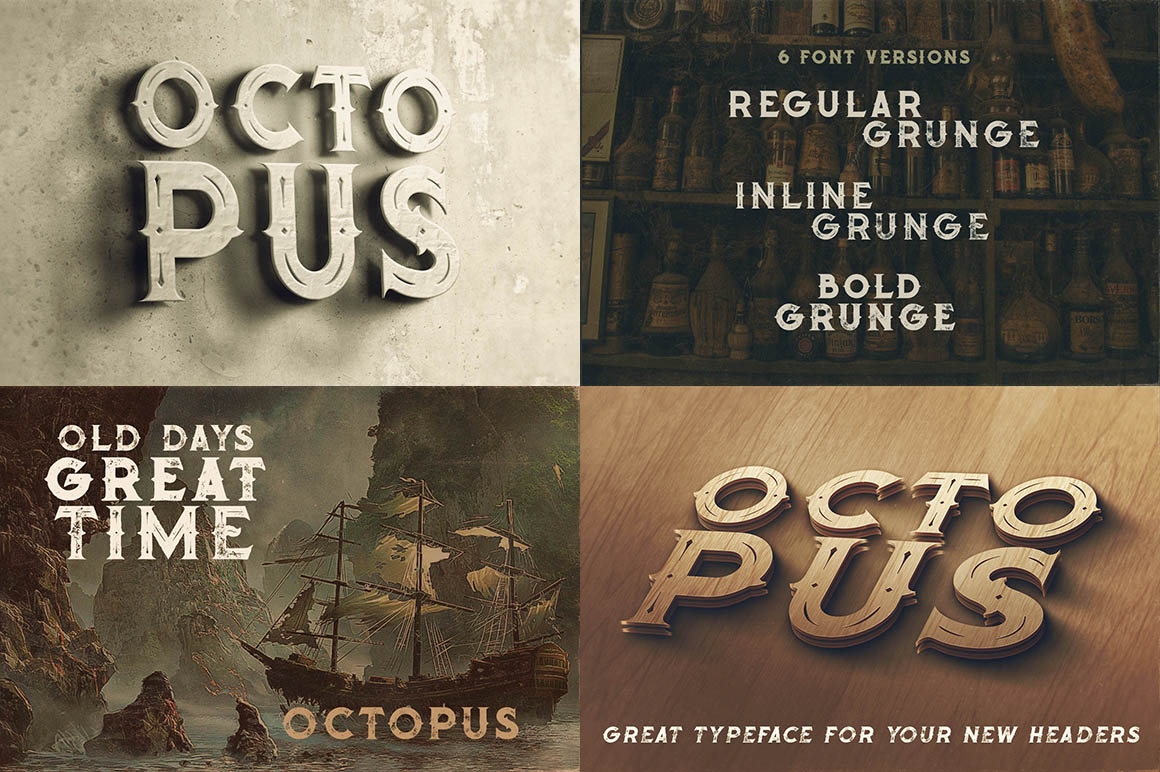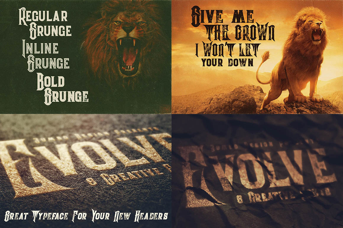 - 8 font files (otf & ttf) – regular & grunge, inline & inline grunge, bold & bold grunge & bold inline & bold inline grunge