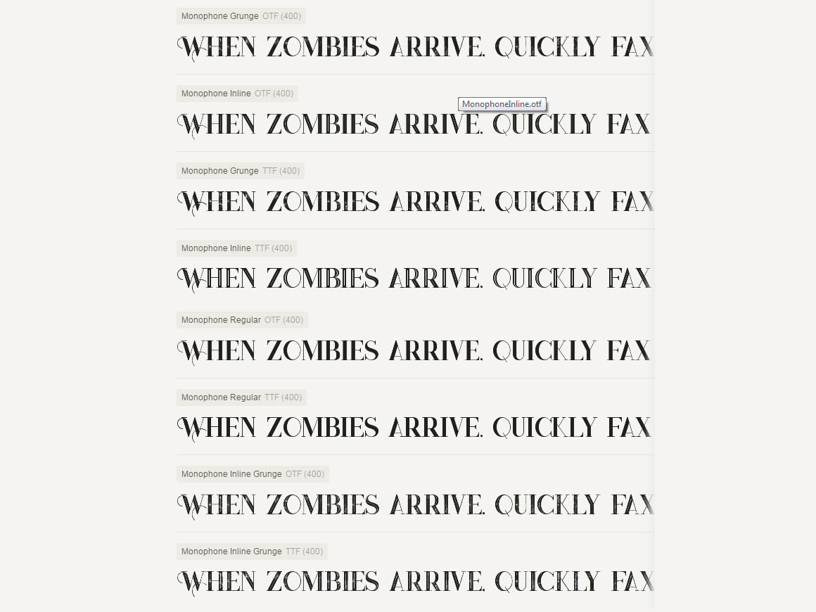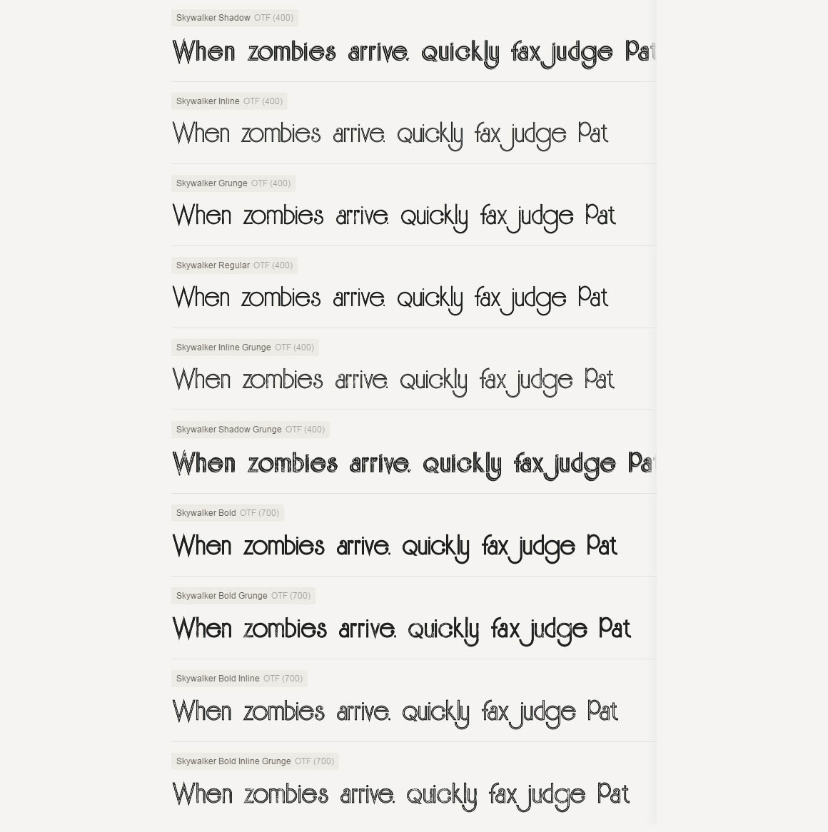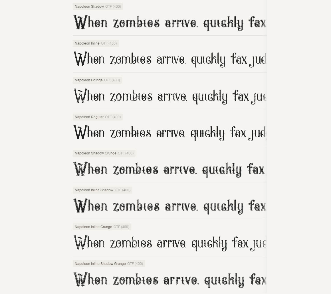 - 8 font files (otf & ttf) – regular & grunge, inline & inline grunge, bold & bold grunge & bold inline & bold inline grunge