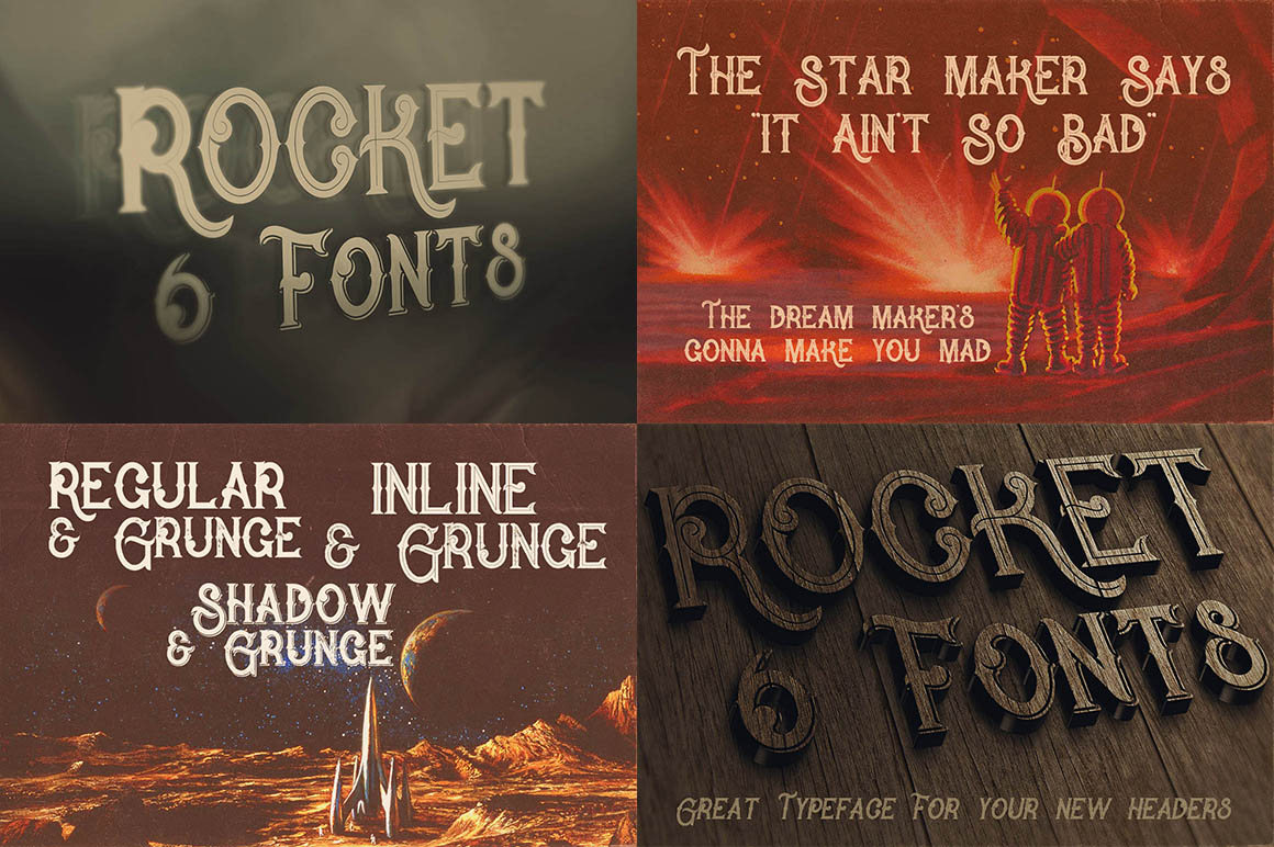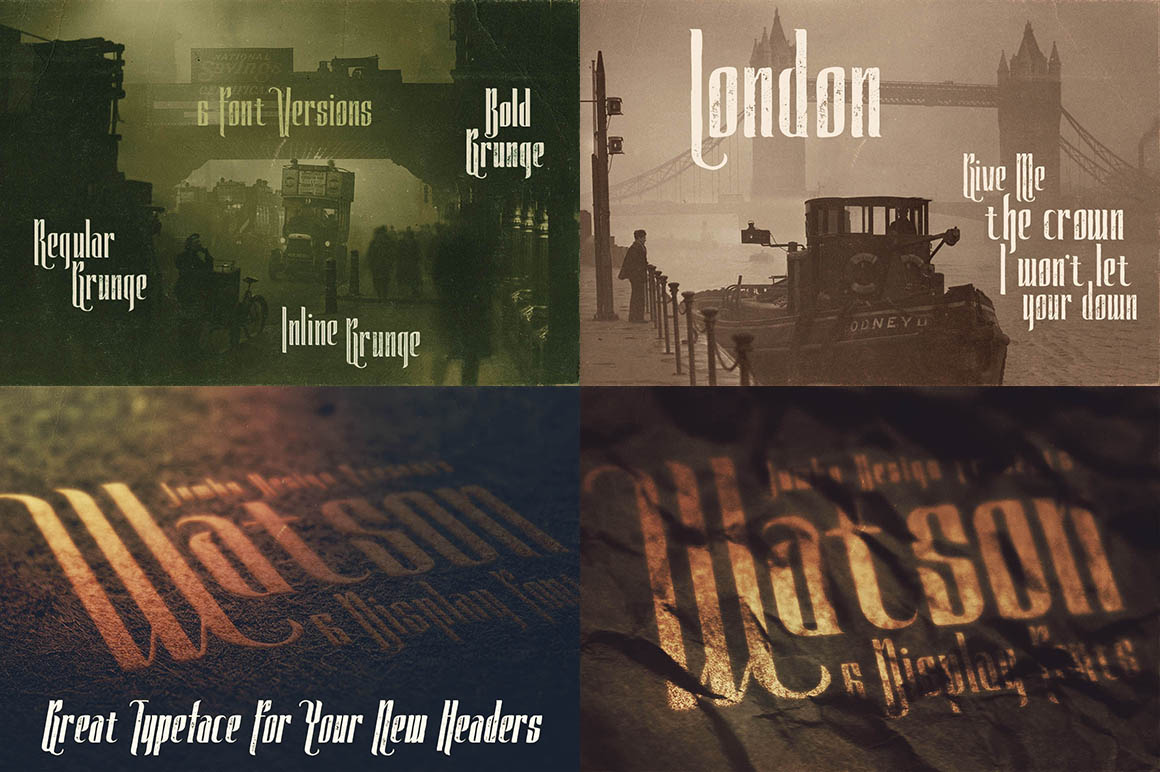 - 8 font files (otf & ttf) – regular & grunge, inline & grunge, shadow & grunge, shadow inline & grunge