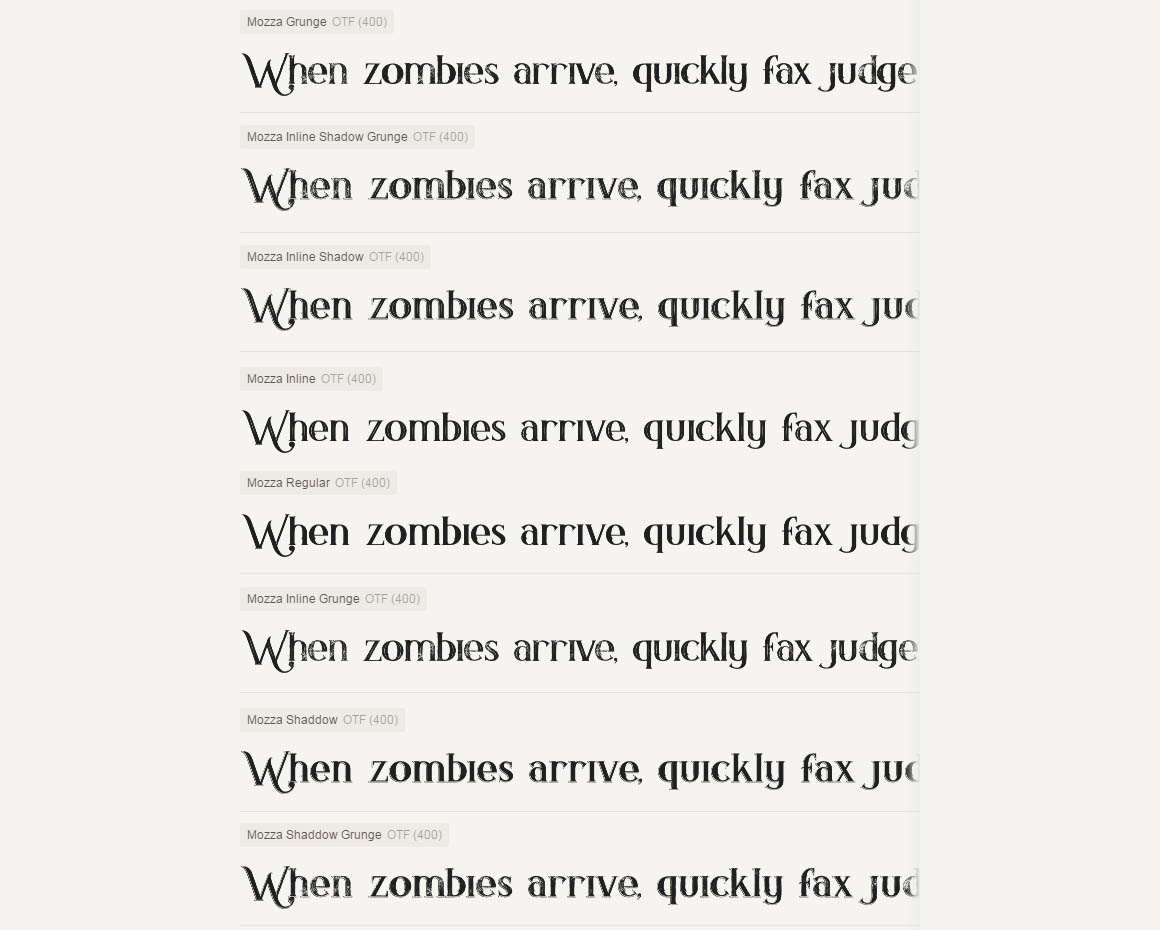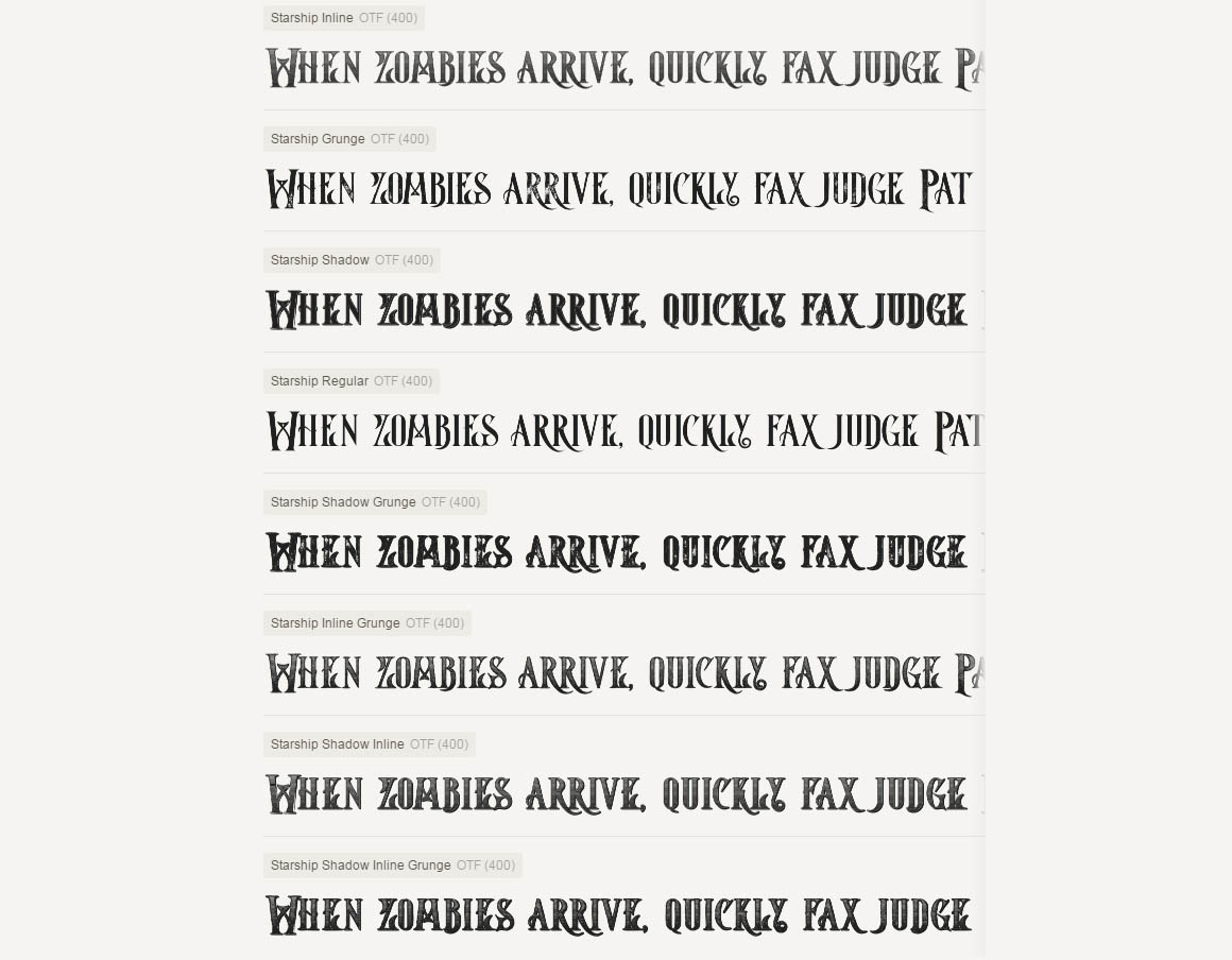 - 8 font files (otf & ttf) – regular & grunge, inline & inline grunge, shadow & shadow grunge, inline shadow & inline shadow grunge