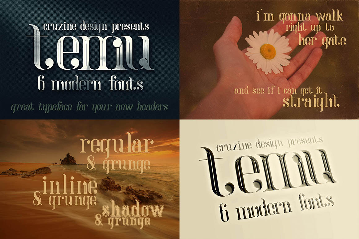 - TTF, OTF formats – 4 fonts: (regular & gurnge, bold & bold gurnge)