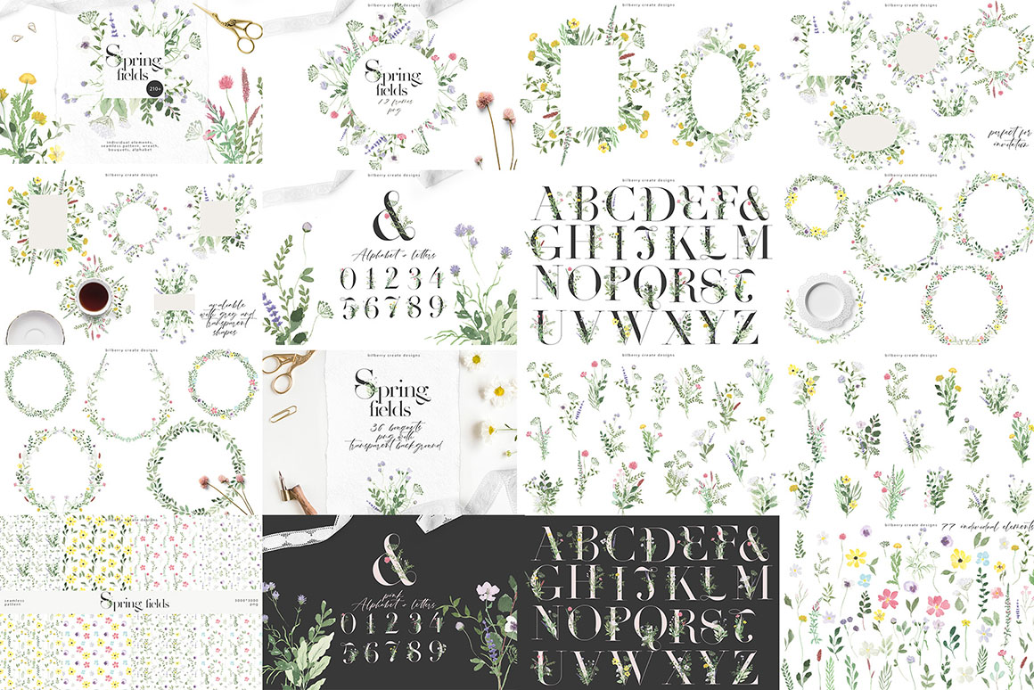 With 60 design collections packaged together in one bundle, you’ll be getting 7,040 design elements chock full of illustrations, patterns, wreaths, textures, and more. They’re great for everything from packaging to T-shirts and logos. In this set you will find : WATERCOLOR, FLOWERS, LEAVES, MOON, ALPHABETS, TROPICAL, PATTERNS, FRAMES, DIY, BACKGROUNDS, TEXTURE, WREATH, COMPOSITIONS, READY TO USE CARDS AND MORE.