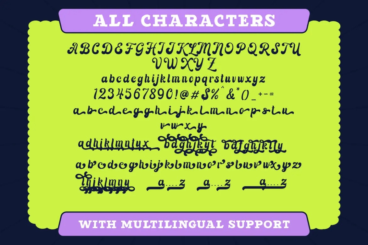 We highly recommend using a program that supports OpenType features and Glyphs panels like many of Adobe apps and Corel Draw, so you can see and access all Glyph variations.