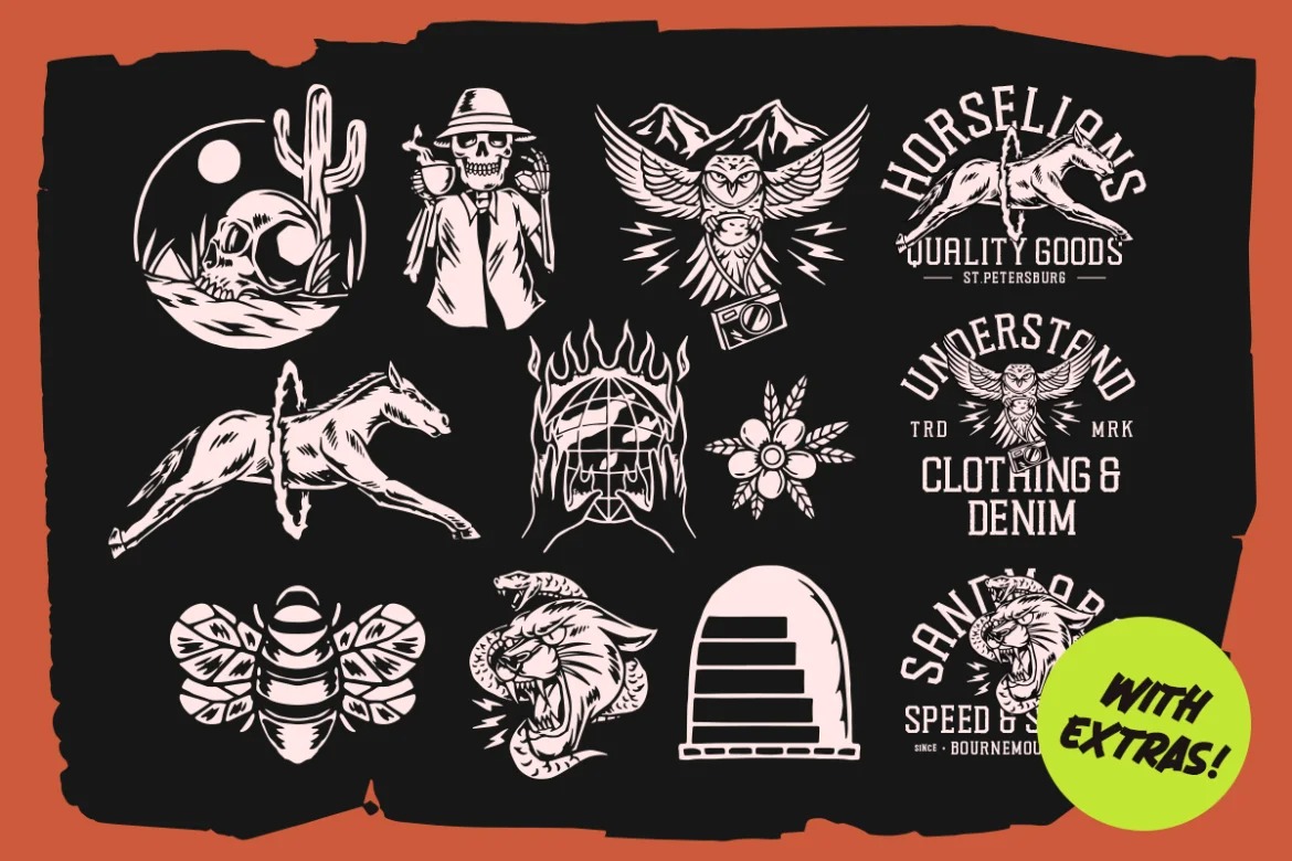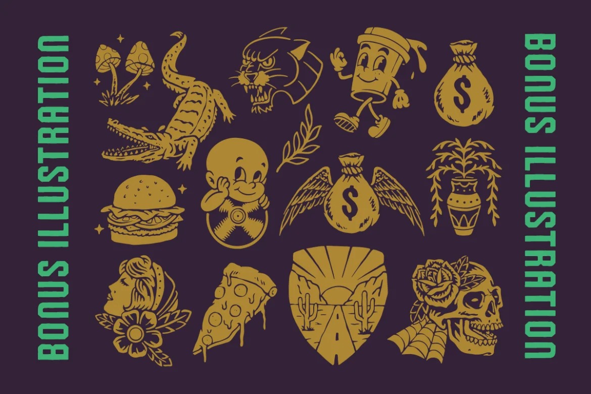 - extended commercial license (like all of our deals): use for unlimited personal and commercial projects + you can also use them in designs/products that you sell. You can use all these items as a part of your non-digital or digital designs ( posters, t-shirt designs, stickers, web templates…). You cannot resell these files directly, or within items/goods where they can be extracted in their original form (like vector shapes, elements, fonts… – they need to be flatten into background or object in your digital item for sale). License is only for 1 person – you’ll need to buy 2 licenses if 2 persons will work with these graphics. Please read more about our exclusive license!