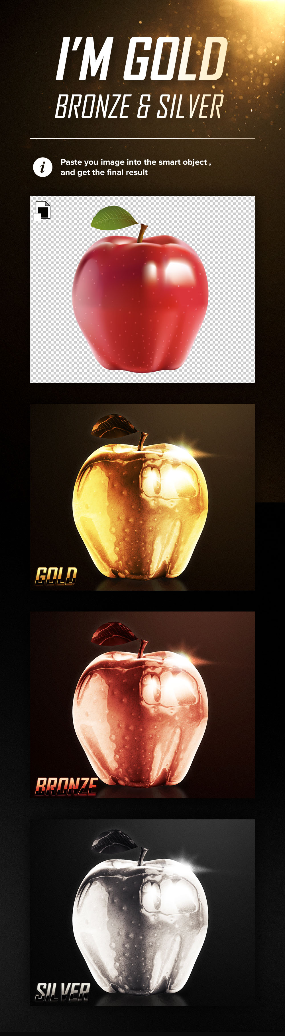 Cool & free Photoshop effects for your objects, shapes or texts from PixelMustache. Get gold, bronze or silver effect for your logo or texts in seconds. More amazing freebies & items from this author here!