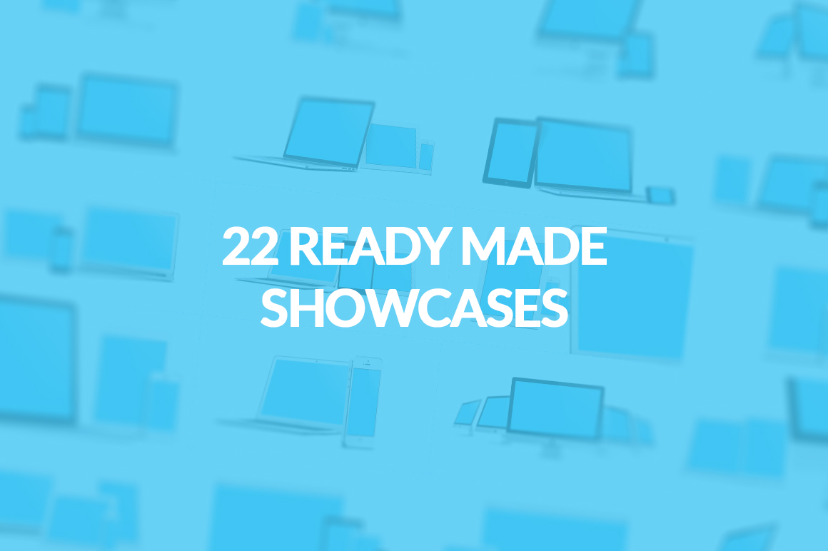 There are ready made showcases to speed up your work. This folder created for any combinations of devices. There are 22 piece of presentation. Sure one of them very convenient for you. Also all of them layered. With just moving, scaling or rotating them you can create better than my ready mades.