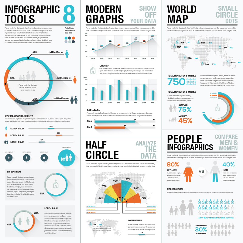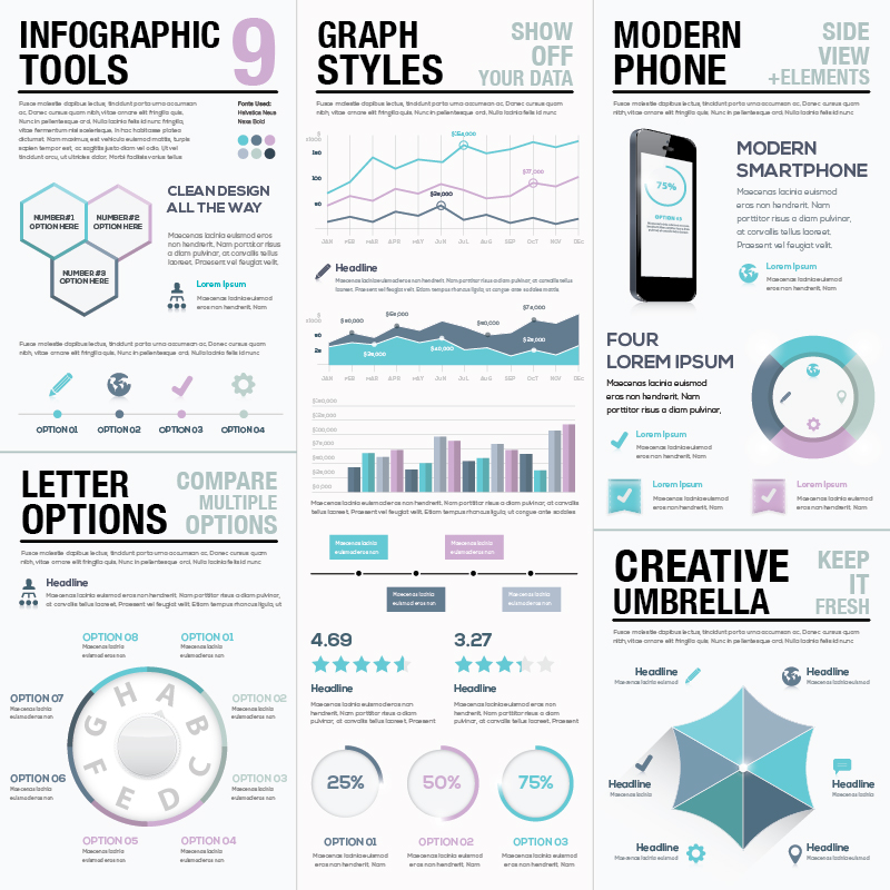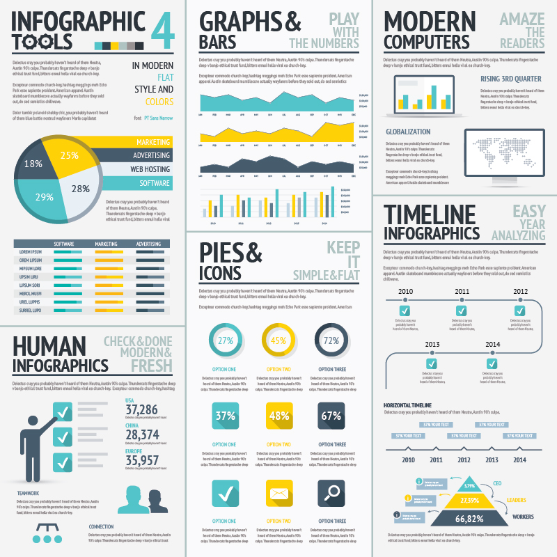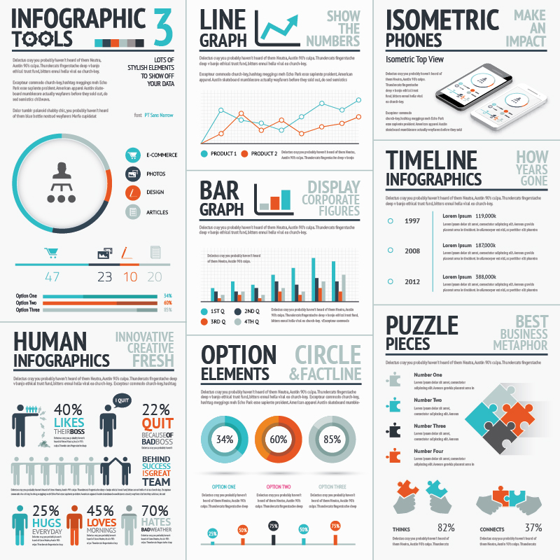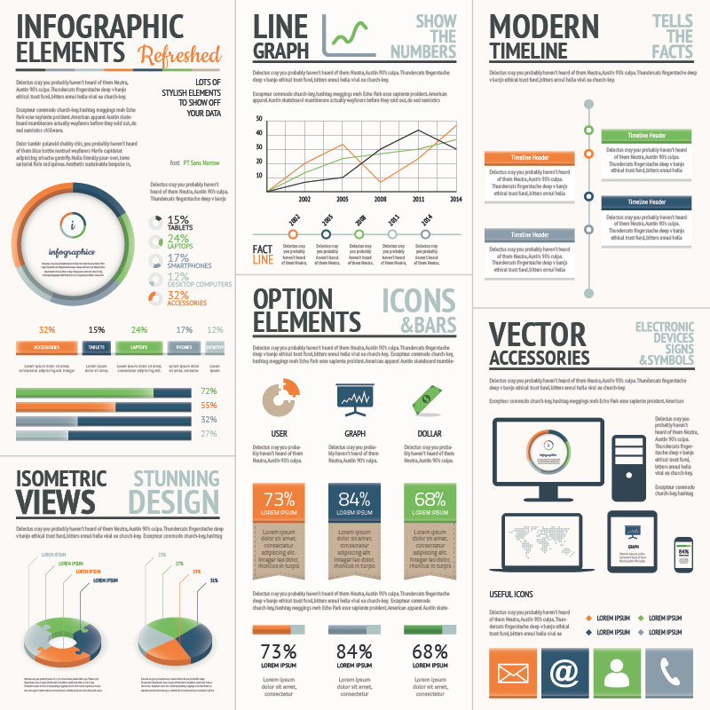 All these vector elements from Infographictemplateshop are ready for print or online use! You can create amazing business infographics or just some print reports with professional style in minutes.